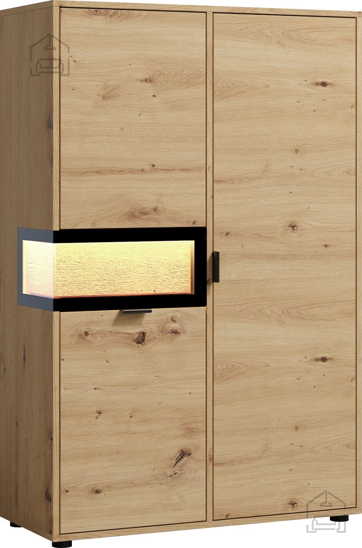 Die Vitrine besteht aus erstklassigem Massivholz, was für Langlebigkeit und Stabilität sorgt. Der Farbton Eiche Artisan bringt Wärme und natürliche Schönheit in Ihr Zuhause und lässt sich harmonisch mit vielen Einrichtungsstilen kombinieren – von klassisch bis modern. Die Glaselemente setzen Ihre Dekorationen perfekt in Szene, während die im Preis enthaltene Beleuchtung Details hervorhebt und eine gemütliche Atmosphäre schafft.