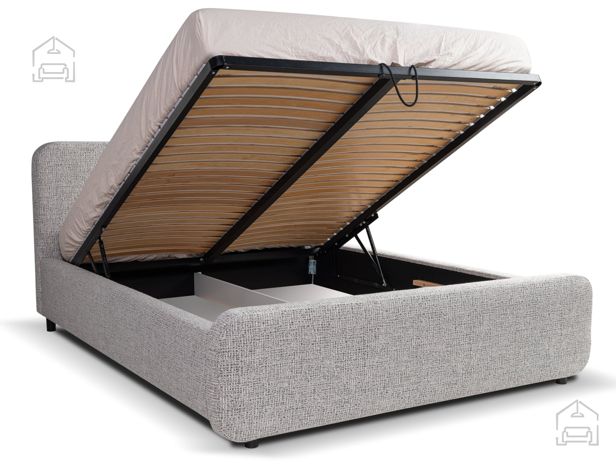 Obwohl der Hebemechanismus nicht enthalten ist, bietet das Hogan-Bett praktische Lösungen mit einer eingebauten Bettwäsche-Schublade. Diese Funktionalität ermöglicht eine optimale Raumnutzung und sorgt dafür, dass Ihr Schlafzimmer immer ordentlich bleibt. Die Schublade ist ideal zur Aufbewahrung von Decken, Kissen oder Bettwäsche und hilft Ihnen, Ihren Raum zu organisieren.