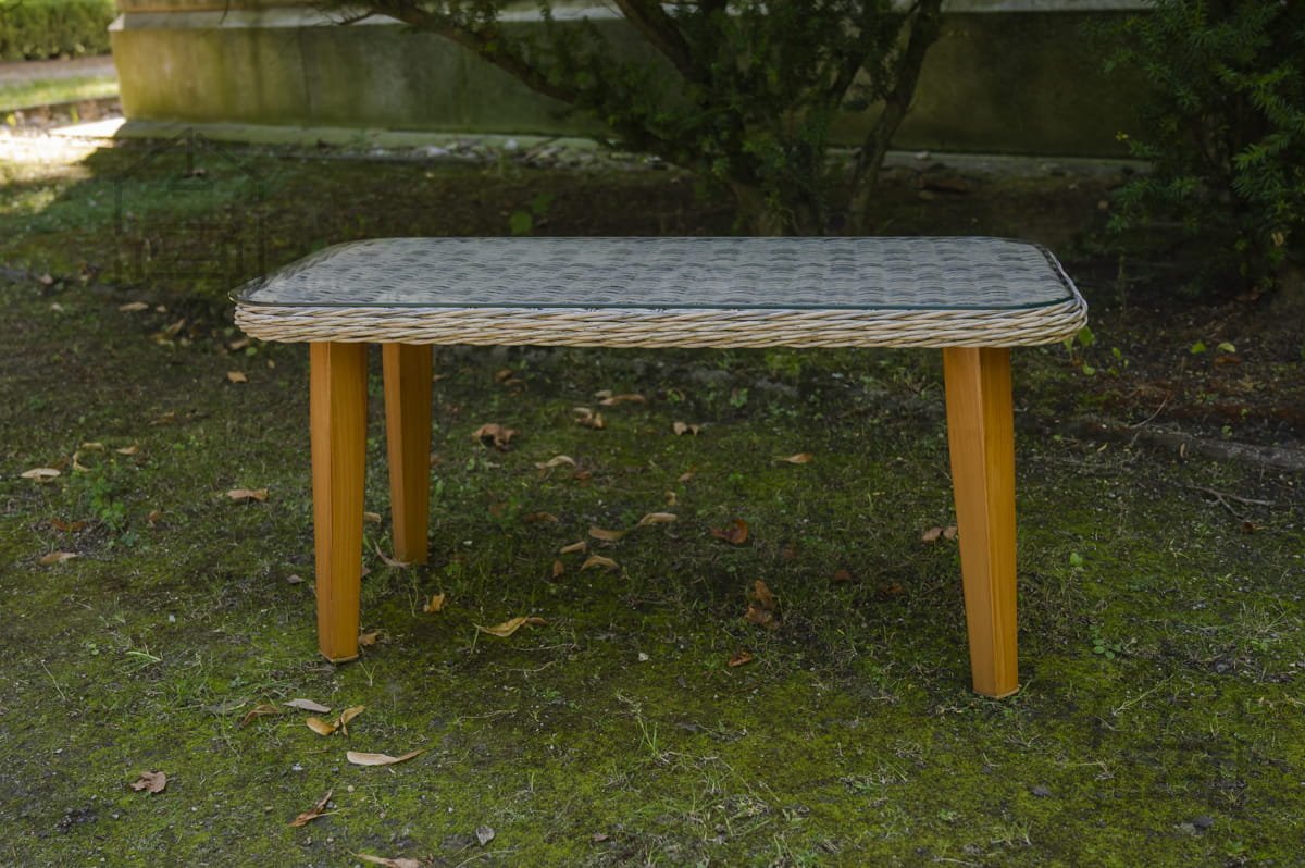 Der Gartentisch Largo wird aus hochwertigen Materialien gefertigt, die eine lange Lebensdauer und Beständigkeit gegenüber allen Witterungsbedingungen garantieren. Das Aluminiumgestell ist leicht, aber äußerst stabil, sodass sich der Tisch mühelos im Garten bewegen lässt. Das Geflecht aus Technorattan verleiht dem Tisch eine moderne Note und ist bekannt für seine UV- und Feuchtigkeitsbeständigkeit. Die Glasplatte sorgt für eine glatte, elegante Oberfläche, die leicht zu reinigen und zu pflegen ist.