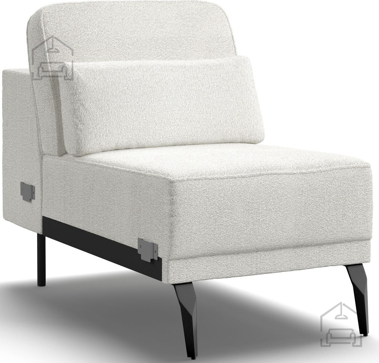 Es ist aus einem hochwertigen Buchenrahmen und Spanplatte gefertigt, was Haltbarkeit und Stabilität gewährleistet. Der Schaum T3538 sorgt für Komfort, während die schwarzen Metallbeine mit einer Höhe von 19 cm einen modernen Touch und Stabilität verleihen. Diese Materialkombination garantiert eine lange Lebensdauer und Beständigkeit des Systems.