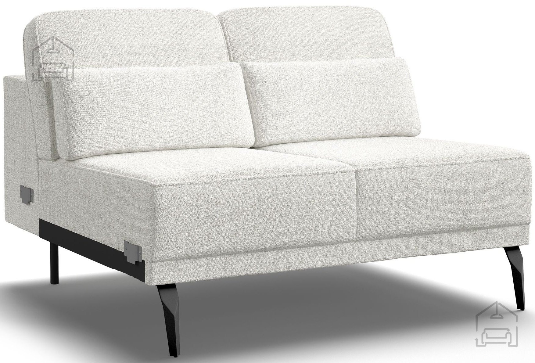Es ist aus einem hochwertigen Buchenrahmen und Spanplatte gefertigt, was Haltbarkeit und Stabilität gewährleistet. Der Schaumstoff T3538 sorgt für Komfort, während die schwarzen Metallfüße, 19 cm hoch, einen modernen Touch und Stabilität verleihen. Diese Materialkombination garantiert eine lange Lebensdauer und Beständigkeit des Systems.