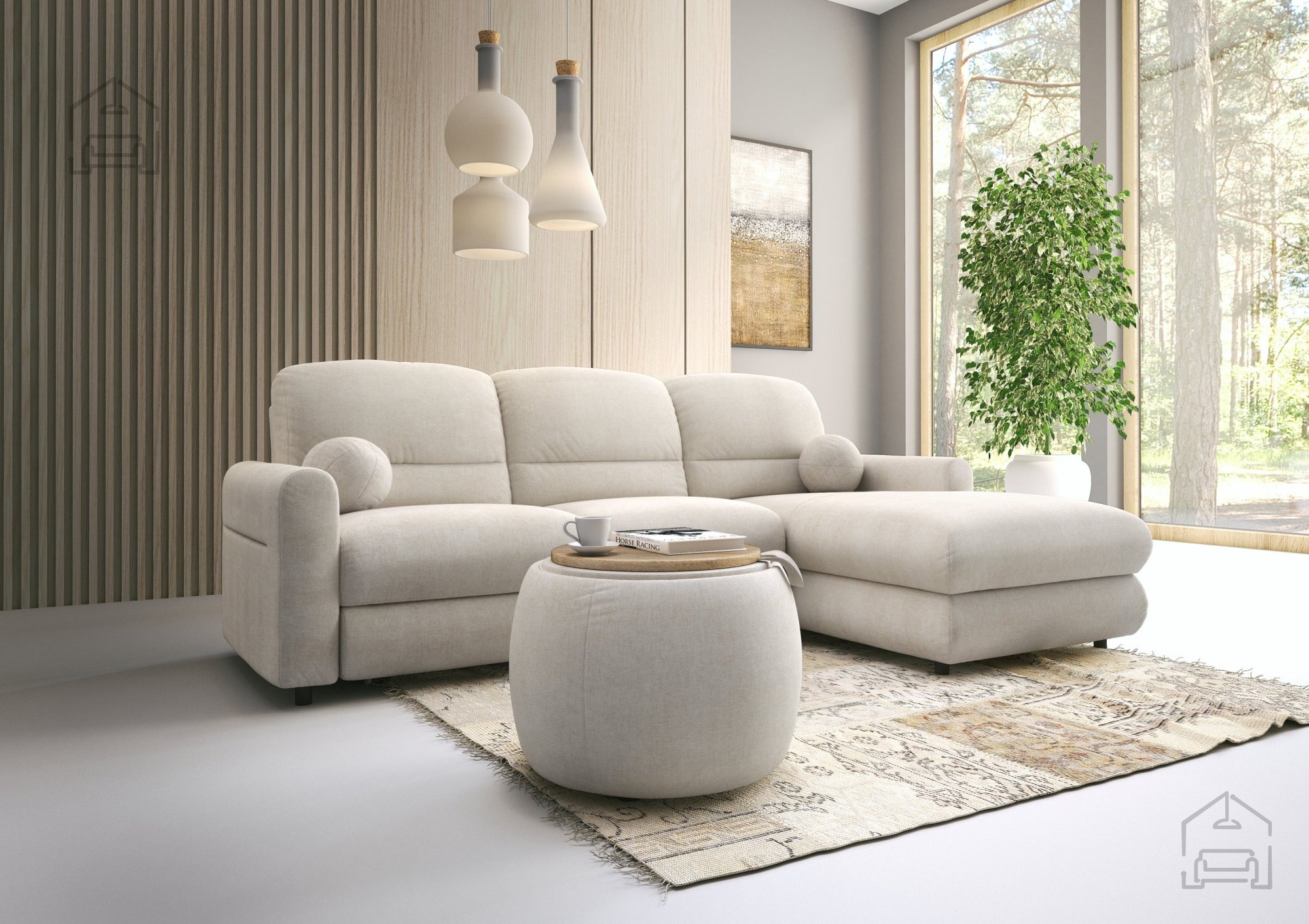 Das Ecksofa Fiord ist nicht nur ein Möbelstück, sondern ein ästhetisches Element, das Eleganz in jeden Raum bringt. Sein modernes Design fügt sich nahtlos in verschiedene Gestaltungskonzepte ein und ermöglicht eine einfache Integration in bestehende Einrichtungen. Fiord ist die perfekte Wahl für Familientreffen, abendliche Filmabende oder einfach für Momente der Entspannung nach einem langen Tag. Sein Rahmen aus massivem Holz sorgt für Stabilität und Zuverlässigkeit, während die Polsterung ohne Federkern optimalen Komfort bietet.