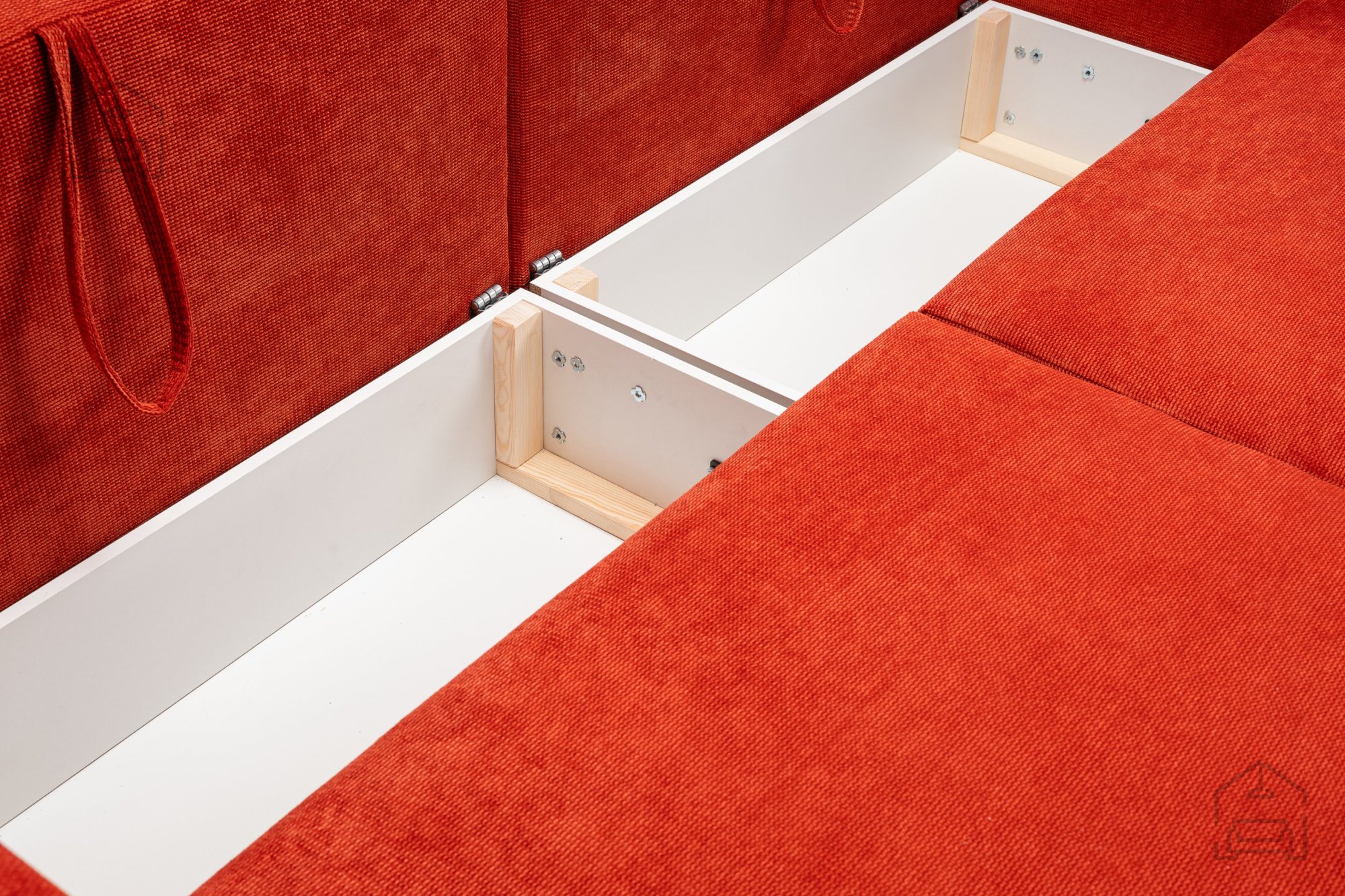Wenn es um die Aufbewahrung geht, enttäuscht das Schlafsofa Malta nicht. Die integrierte Bettwäsche-Schublade ermöglicht eine einfache Aufbewahrung von Decken, Kissen und anderer Bettwäsche, was dazu beiträgt, Ihr Zuhause organisiert und ordentlich zu halten.
