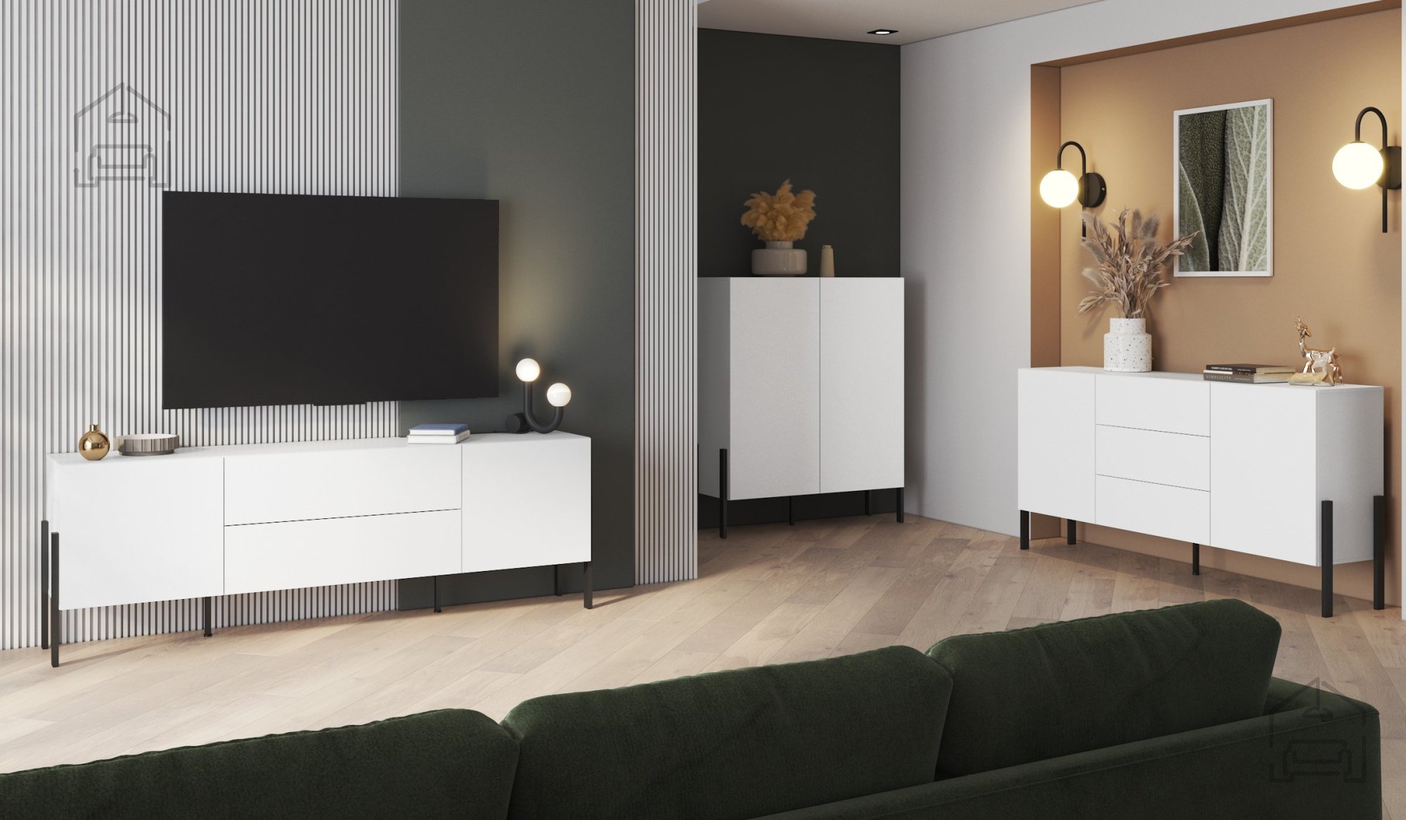 Die klaren Linien und das reduzierte Design der Jukon-Kommode bringen Ruhe und Stil in Ihr Zuhause. Die matte Oberfläche reflektiert das Licht dezent und lässt den Raum größer wirken – ideal, auch für kleinere Wohnzimmer.