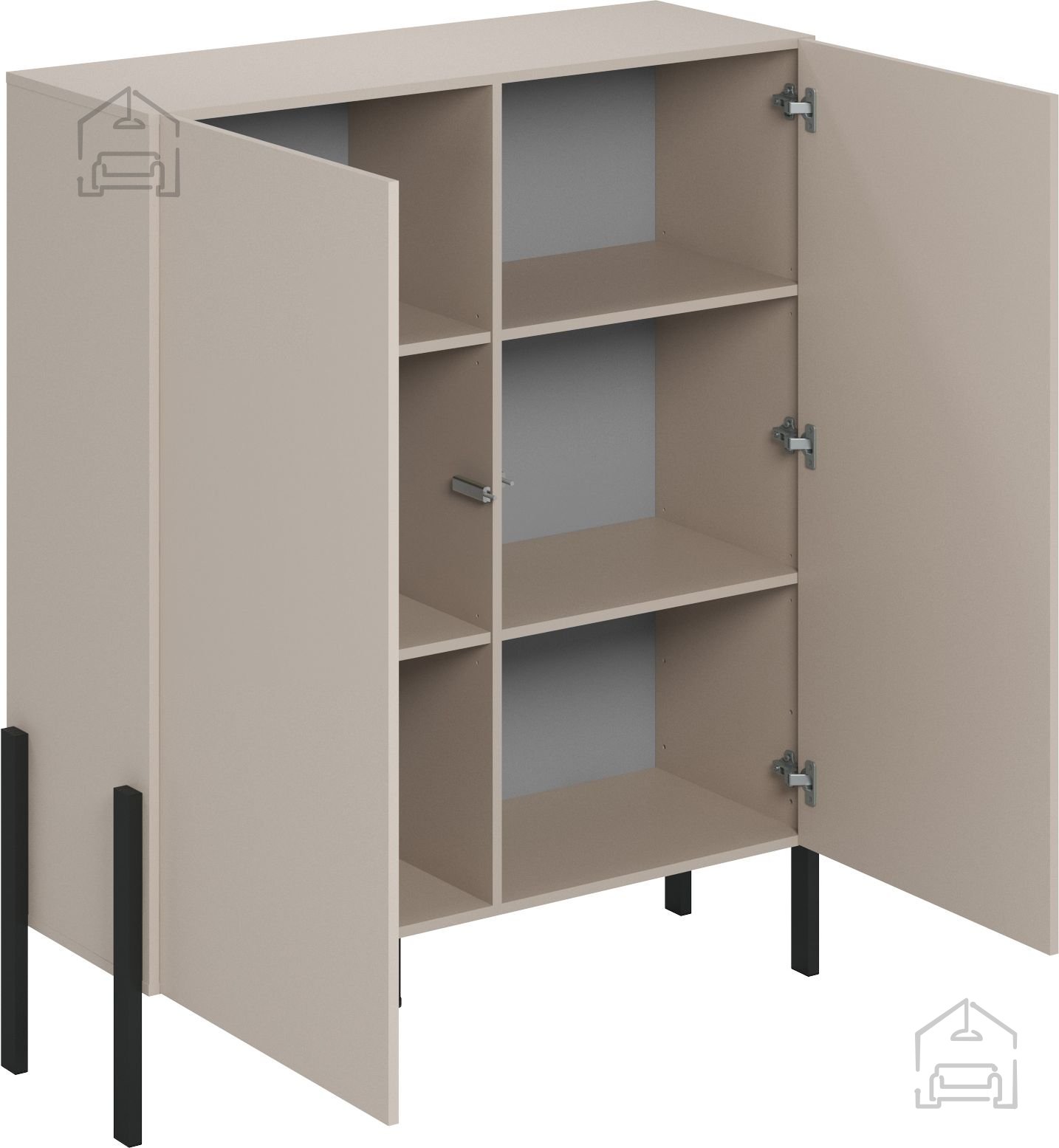 Die Kommode Jukon 2D in der Farbe Kaschmir ist die perfekte Wahl für alle, die in ihrem Zuhause Stil und Alltagstauglichkeit verbinden möchten. Mit ihren Maßen von 114x40x135 cm bietet sie die ideale Lösung für zusätzlichen Stauraum im Wohnzimmer, Schlafzimmer oder im Büro. Gefertigt aus hochwertiger Spanplatte in der renommierten Fabrik Helvetia Meble in Polen, überzeugt sie durch Langlebigkeit und Stabilität.