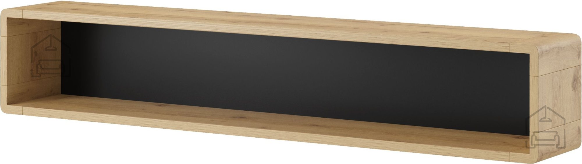 Der Regal Aston ist nicht nur ein praktisches Möbelstück, sondern auch ein stilvolles Dekorationselement, das zum Blickfang in Ihrem Zuhause werden kann. Die Kombination aus Schwarz und dem warmen Holzton der Eiche bringt Harmonie und Behaglichkeit in jeden Raum. Ideal geeignet, um Ihre Lieblingsbücher, Souvenirs oder Kunstwerke stilvoll zu präsentieren – und so eine persönliche, einladende Atmosphäre zu schaffen.
