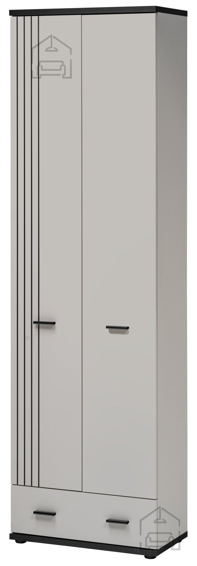 Der Schrank Hugo Typ A ist aus hochwertiger Spanplatte gefertigt, die Haltbarkeit und eine lange Lebensdauer gewährleistet. Seine Farbkombination – ein Korpus in anspruchsvoller Cashmere-Farbe und eine Front in elegantem Schwarz – bringt einen Hauch von Raffinesse in jeden Raum. Diese Farbharmonie ist ideal für moderne Interior-Design-Trends, bei denen Ästhetik auf Funktionalität trifft.