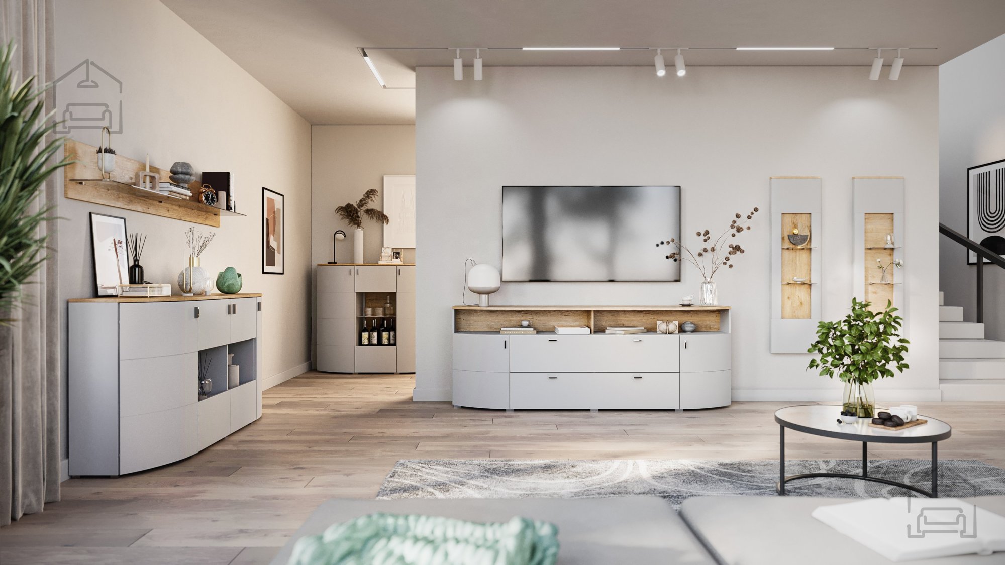 Erleben Sie die harmonische Kombination aus modernem Stil und Komfort mit unserer außergewöhnlichen Wohnwand Sambuca, die für alle entworfen wurde, die Wert auf Design und praktische Nutzung legen. Durch die edle Farbkombination aus Hellgrau und Evoke fügt sich dieses Set mühelos in jedes Interieur ein und behält dabei seinen ganz eigenen Charakter.