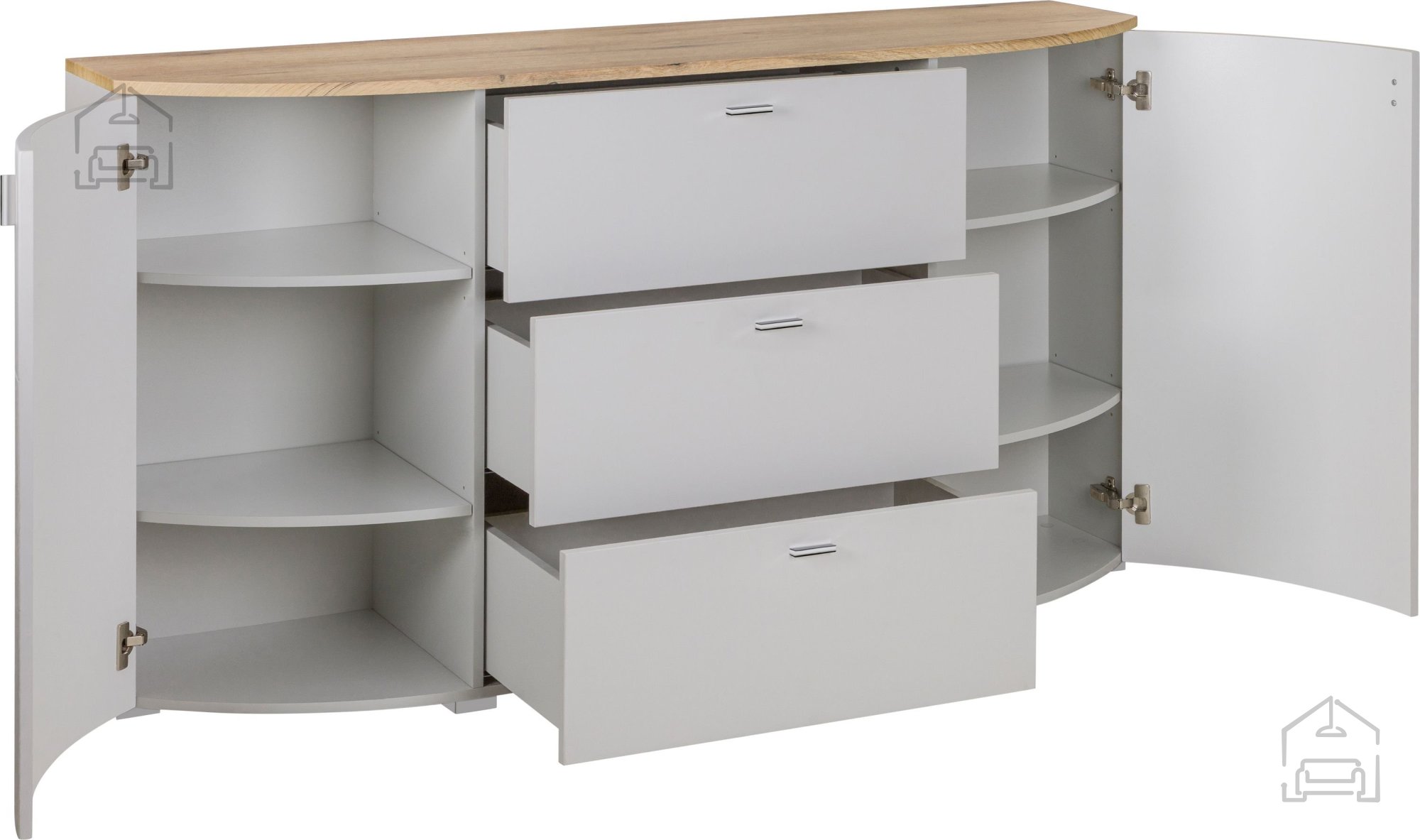 Wenn Sie eine gelungene Verbindung von Stil und Alltagstauglichkeit suchen, ist die Kommode Sambuca 2D3S genau das Richtige für Ihr Zuhause. Mit ihren Maßen von 160x44x90 cm bringt sie modernes Design und praktische Nutzung in jeden Raum. Gefertigt aus hochwertigem MDF, überzeugt sie durch Langlebigkeit und Stabilität. In einem hellgrauen Farbton Evoke gehalten, fügt sich die Kommode harmonisch in verschiedenste Einrichtungsstile ein und verleiht dem Raum einen modernen Charakter.
