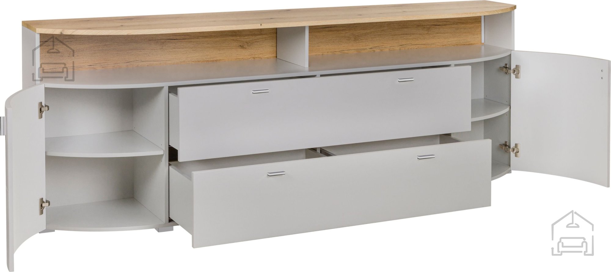 Treten Sie ein in die Welt stilvollen Designs und praktischer Funktionalität mit unserer TV-Kommode Sambuca 2D2S. Dieses elegante, großzügig bemessene Möbelstück verleiht Ihrem Zuhause einen modernen und zugleich praktischen Touch. Mit den Maßen 220x44x80 cm bietet sie reichlich Platz – ideal für alle, die Stauraum suchen, ohne beim Stil Kompromisse einzugehen.