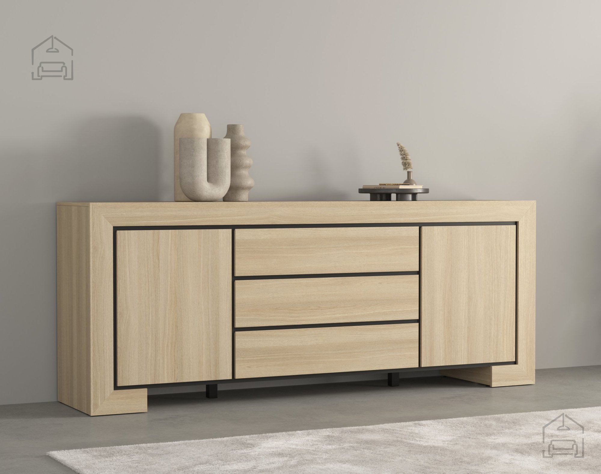 Die Kommode Cube II überzeugt mit ihren Maßen von 225x48x90 cm und fügt sich dadurch harmonisch in unterschiedlich große Räume ein – von der großzügigen Wohnstube bis zum gemütlichen Schlafzimmer. Gefertigt aus hochwertiger Spanplatte, bietet sie Langlebigkeit und Widerstandsfähigkeit im täglichen Gebrauch. Ihre Oberfläche in elegantem Eichenfarbton verleiht Wärme und eine natürliche Ausstrahlung, die sich wunderbar mit verschiedenen Einrichtungsstilen – ob klassisch oder modern – kombinieren lässt.