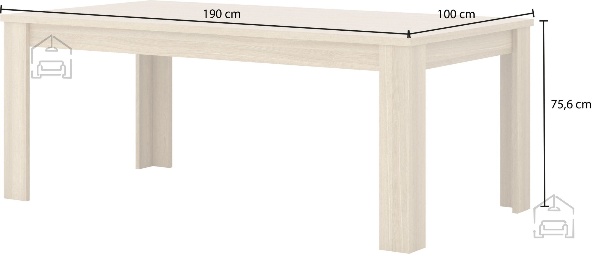 4. Familiengerechte Größe: Mit den Maßen 190x100x76 cm bietet der Tisch großzügig Platz für mehrere Personen. Somit ist er ideal für Familienessen oder gemütliche Abende mit Freunden.