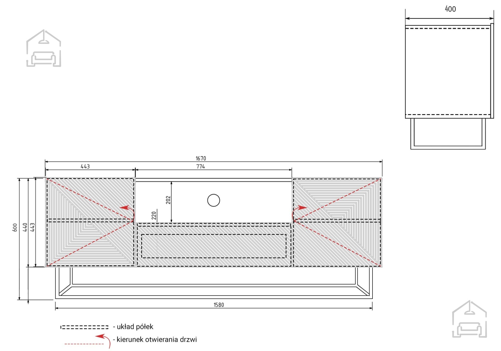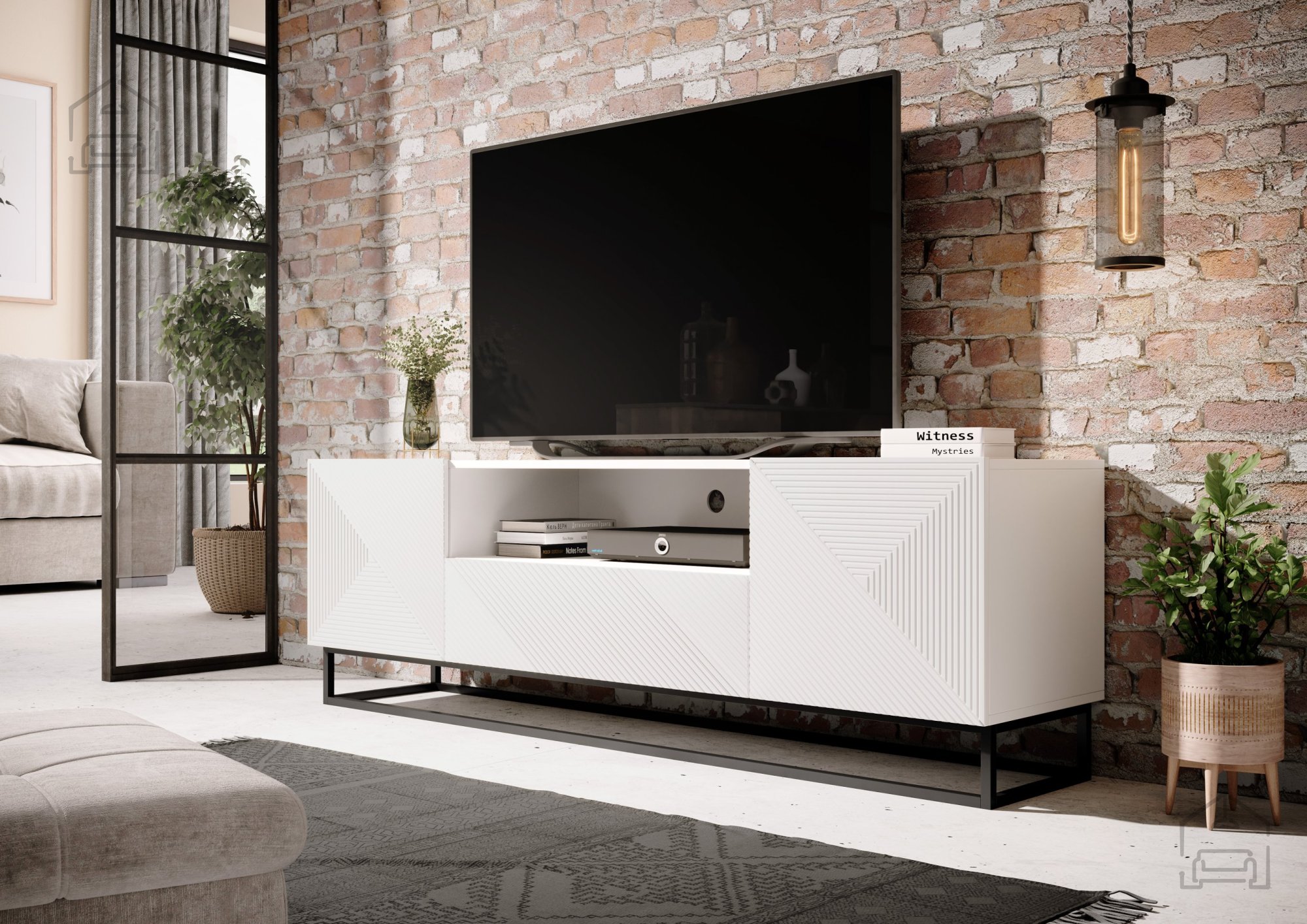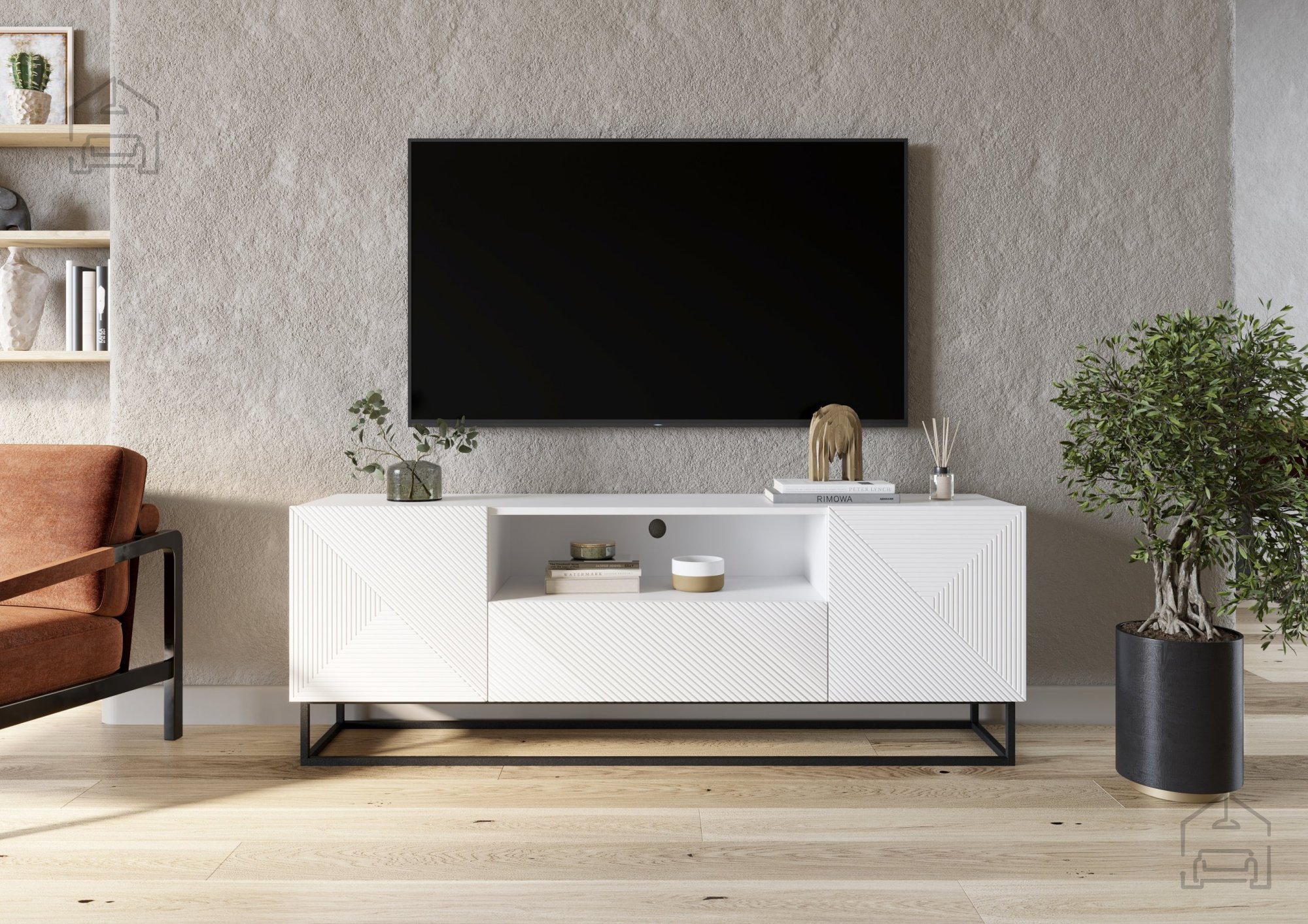 Die TV-Kommode wurde aus sorgfältig ausgewählten Materialien gefertigt, die Langlebigkeit und Stabilität gewährleisten. Der Korpus besteht aus einer 16 mm starken laminierten Platte, während die Fronten aus MDF-Platten mit PVC-Folie überzogen sind – das macht sie kratzfest und pflegeleicht. Die Kanten sind mit ABS versehen, was sie stoßfest macht und den makellosen Look über viele Jahre erhält. Das pulverbeschichtete Metallgestell sorgt nicht nur für Stabilität, sondern verleiht dem Möbelstück auch einen modernen, industriellen Charakter, wie er derzeit sehr beliebt ist. Die 16 cm hohen Füße erleichtern das Reinigen unter der Kommode und sorgen zudem für ein luftiges Raumgefühl.