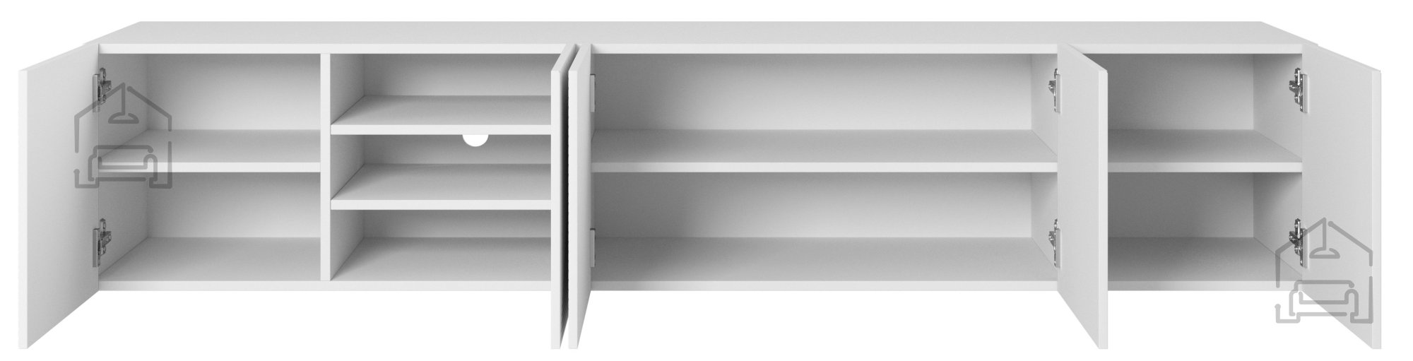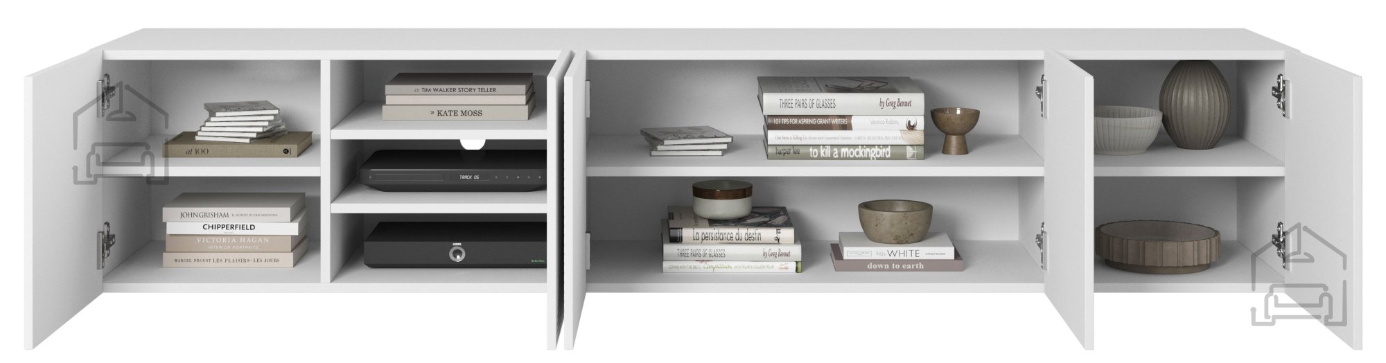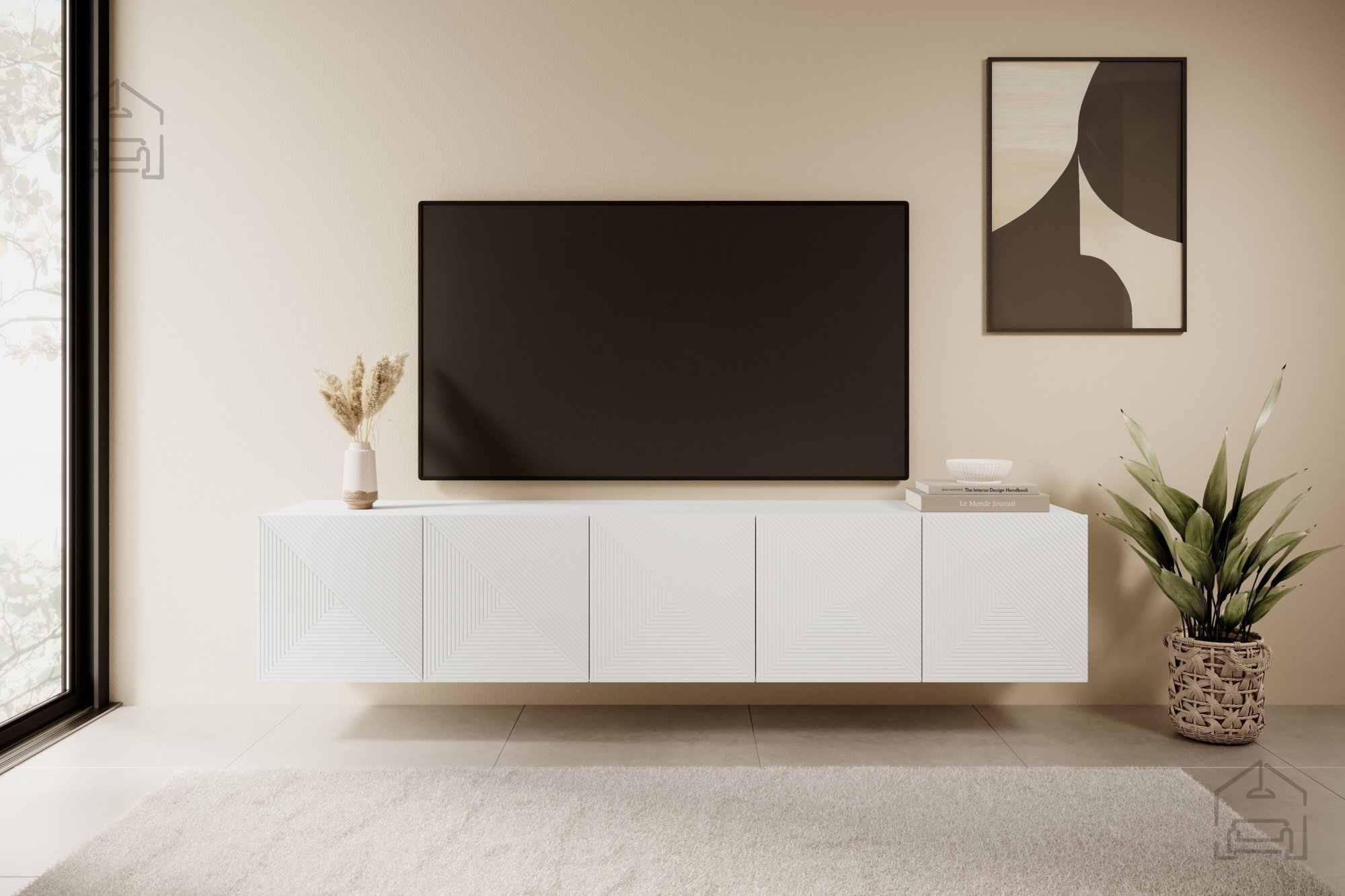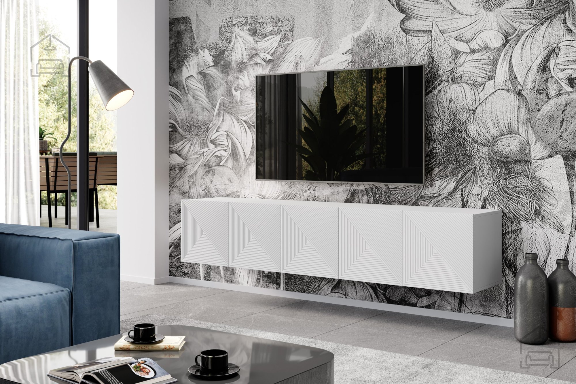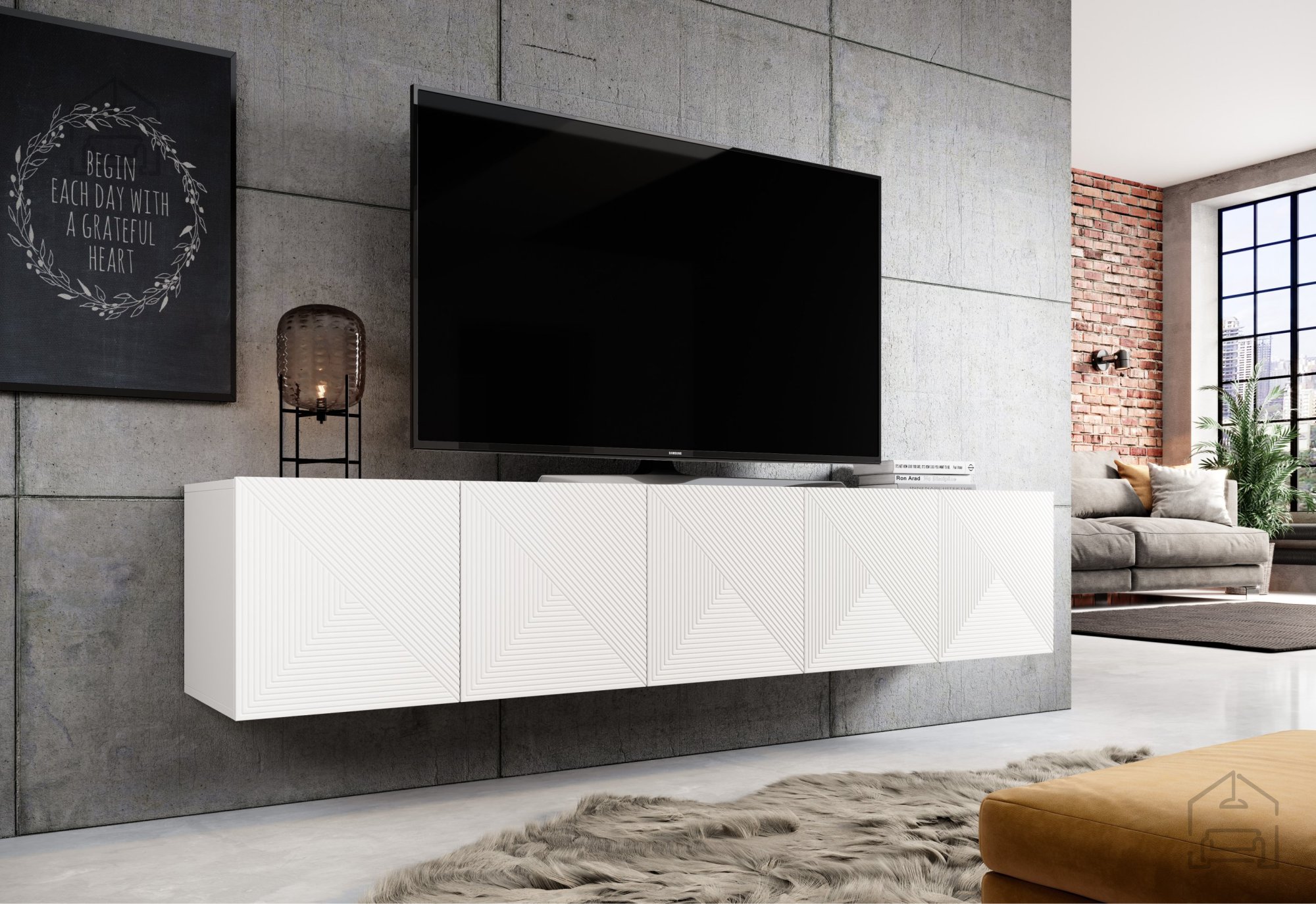 Entdecken Sie die perfekte Verbindung von Stil und Alltagstauglichkeit mit der TV-Wandanlage Asha 200 5D, die Ihrem Wohnzimmer das gewisse Etwas verleiht. Das moderne, minimalistische Design in mattem Weiß fügt sich harmonisch in jede Einrichtung ein – ganz gleich, welchen Stil Sie bevorzugen. Diese außergewöhnliche Kommode überzeugt nicht nur optisch, sondern auch durch ihre praktische Aufteilung mit viel Platz für Multimedia-Geräte und Zubehör.