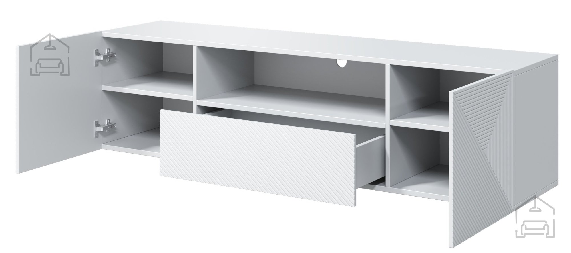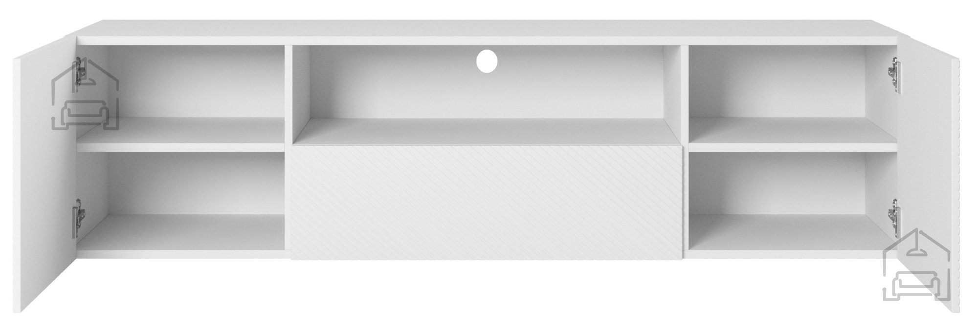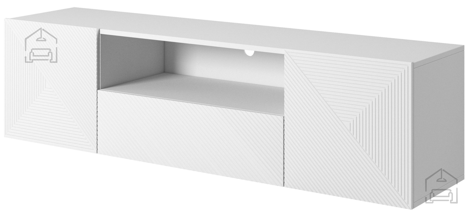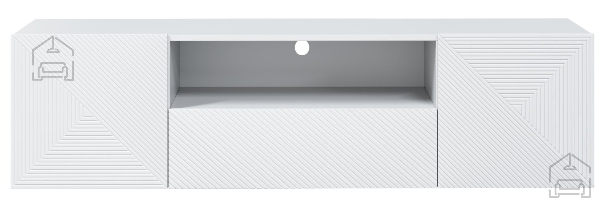 Wir präsentieren Ihnen die Wand-TV-Kommode Asha 167 2D1SZ in einem zeitlosen, mattweißen Farbton, der Ihrem Wohnzimmer einen modernen und eleganten Touch verleiht. Diese Kommode überzeugt nicht nur optisch, sondern auch durch hohe Alltagstauglichkeit, da sie viel Platz zur Aufbewahrung und Organisation Ihrer Multimedia-Geräte und Zubehörteile bietet.