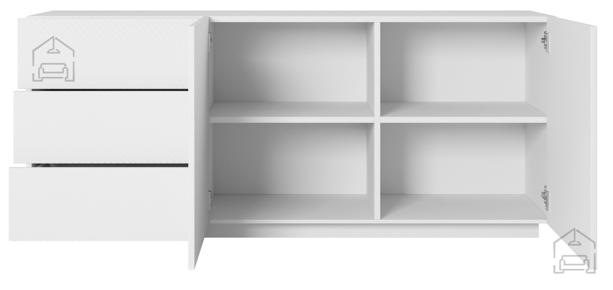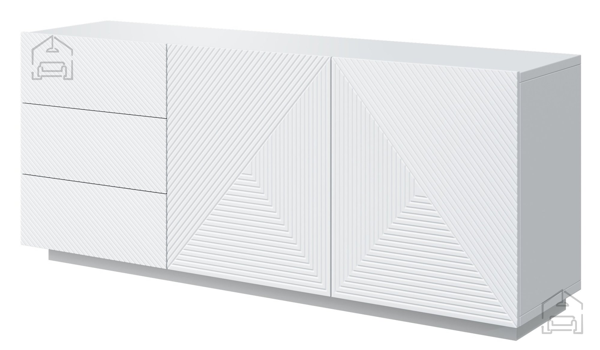 Wir präsentieren Ihnen die Kommode Asha 167 2D3SZ, die mit ihrem wunderschönen weißen Hochglanz-Finish und dem klaren, minimalistischen Design begeistert. Sie ist ein echtes Highlight für moderne Wohnräume – mehr als nur ein Möbelstück, nämlich ein Ausdruck von Eleganz, Raffinesse und praktischer Alltagstauglichkeit.