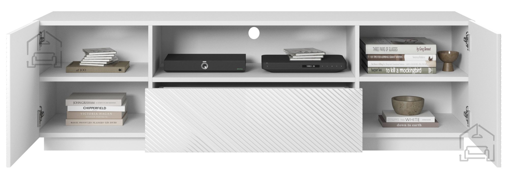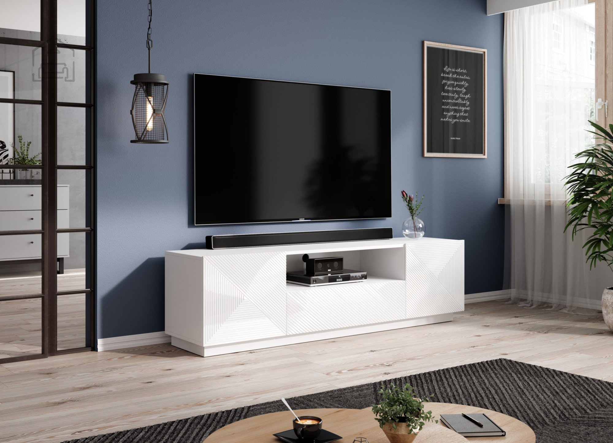 Die perfekte Verbindung von Stil und Praktikabilität zu finden, ist nicht immer einfach – doch die TV-Kommode Asha 167 2D1SZ in Weiß Hochglanz schafft genau das. Dieses außergewöhnliche Möbelstück überzeugt nicht nur durch sein edles Design, sondern auch durch seine hohe Funktionalität und ist so konzipiert, dass es all Ihre Anforderungen an Stauraum und Ordnung erfüllt.