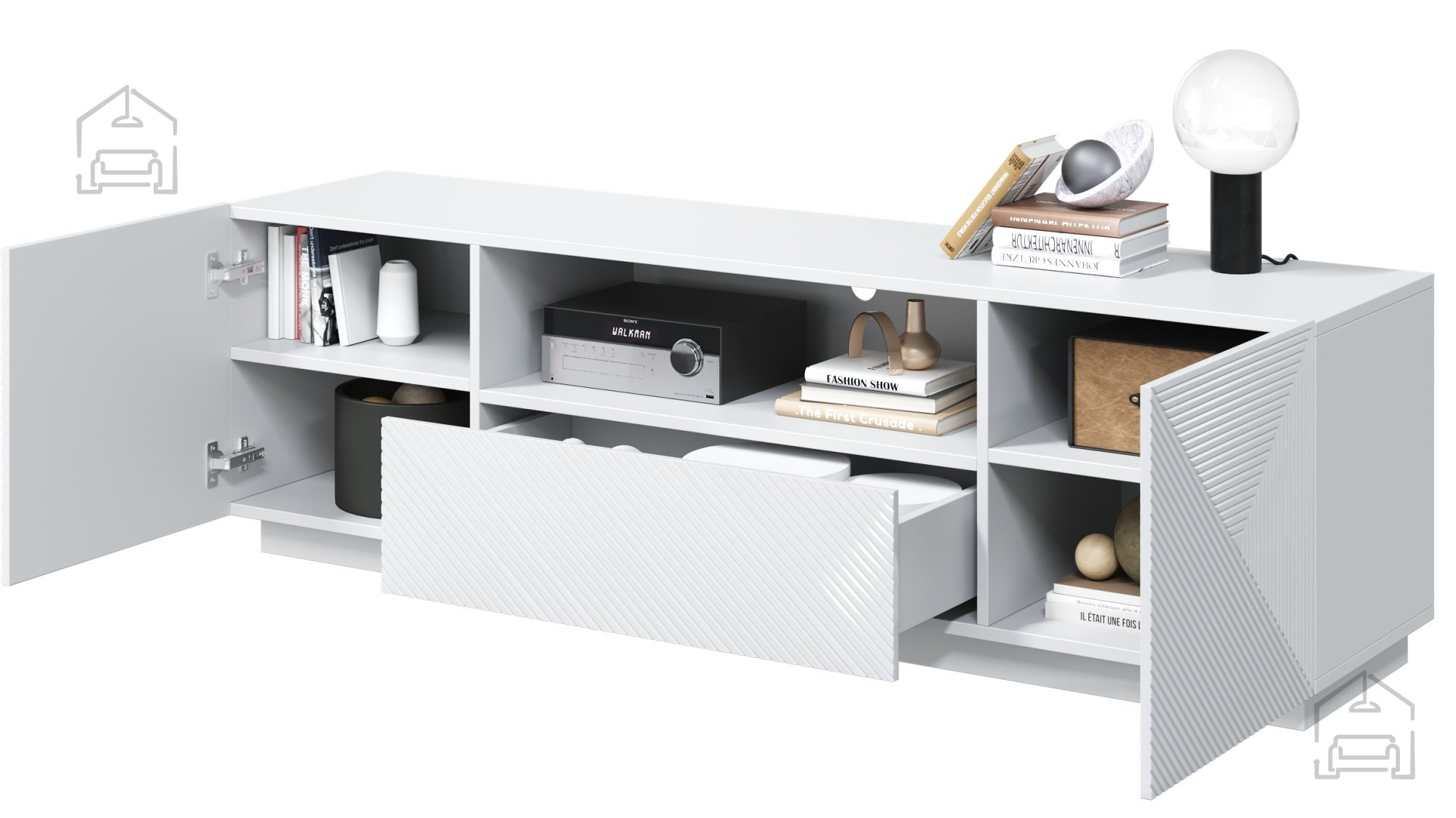 Die TV-Kommode Asha 167 2D1SZ ist mehr als nur ein Möbelstück – sie spiegelt Ihren Stil und Geschmack wider. Mit ihrem eleganten Design und den praktischen Details bringt sie neue Harmonie in Ihr Zuhause. Verleihen Sie Ihrem Wohnzimmer einen Hauch von Eleganz und Funktionalität mit dieser besonderen Kommode.