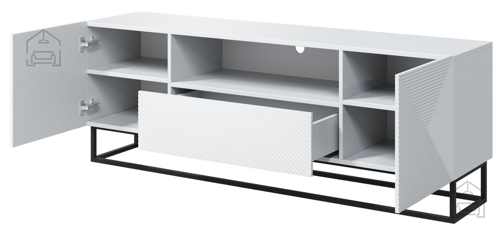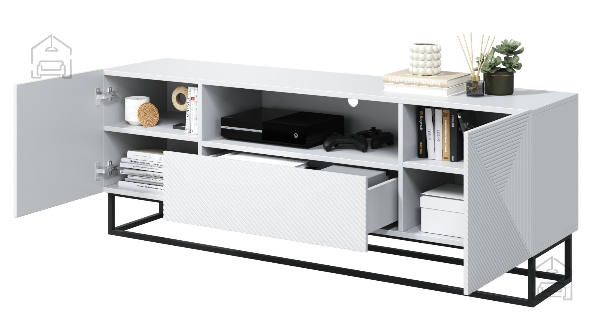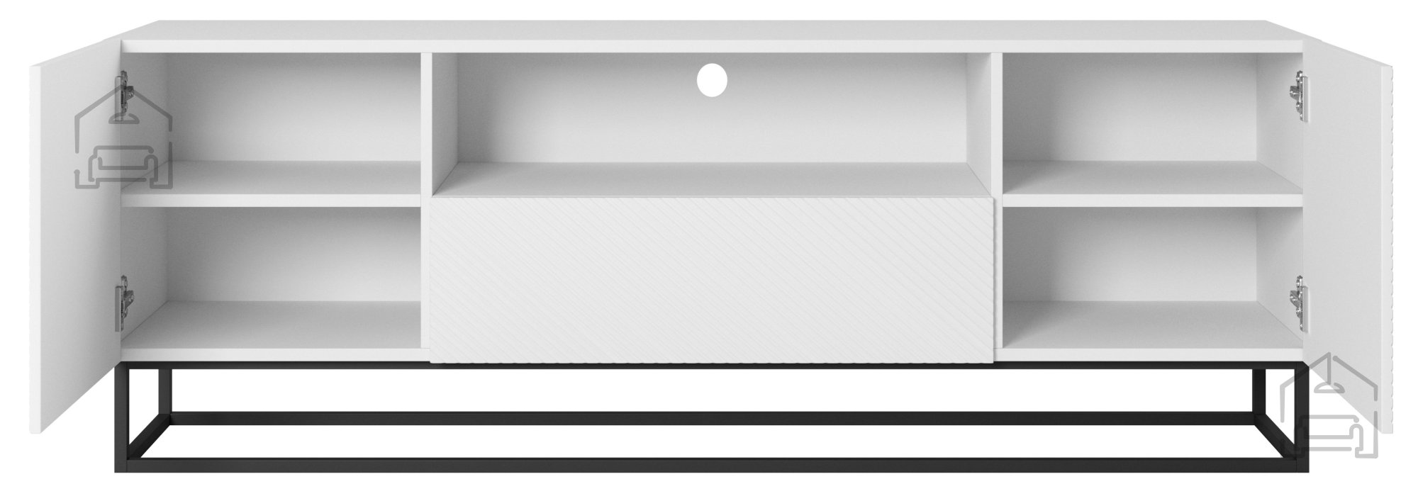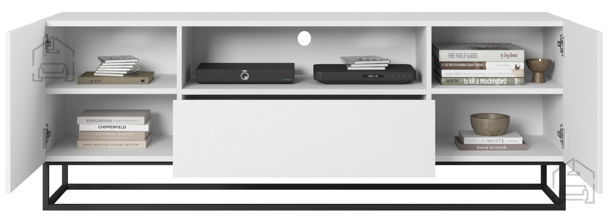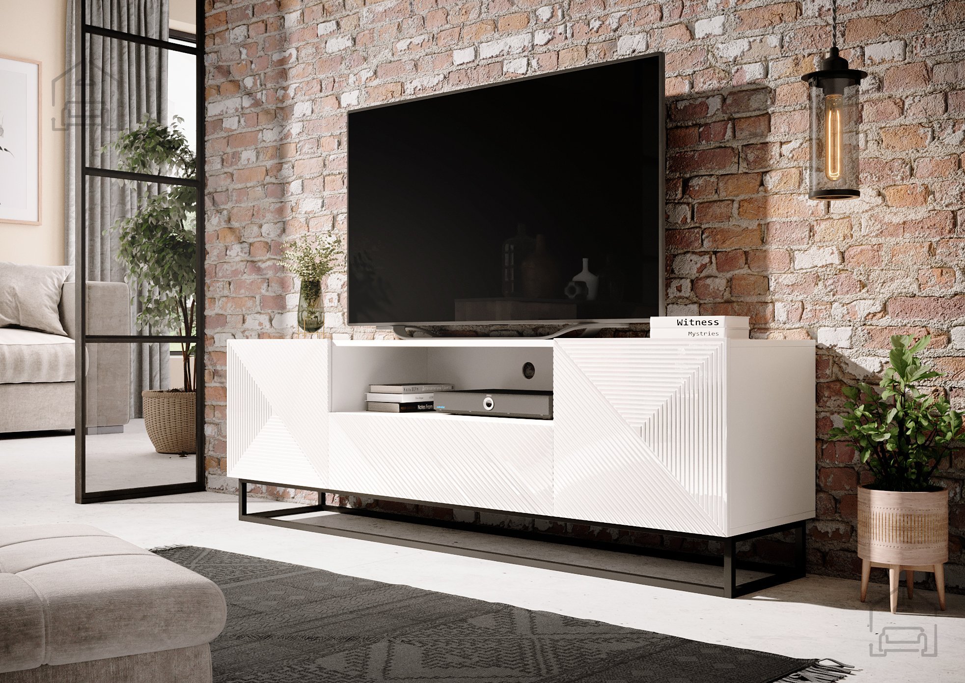 Sind Sie auf der Suche nach einem eleganten und zugleich praktischen Möbelstück für Ihr Wohnzimmer? Die TV-Kommode mit Metallrahmen Asha 167 2D1SZ in Hochglanz Weiß ist eine ideale Wahl für alle, die modernes Design und Funktionalität schätzen. Mit den Maßen 167x40x60 cm bietet sie ausreichend Platz für Ihren Fernseher, Ihre Audio- und Videoausstattung sowie Zubehör und fügt sich dank ihres minimalistischen Looks harmonisch in jedes Wohnkonzept ein.
