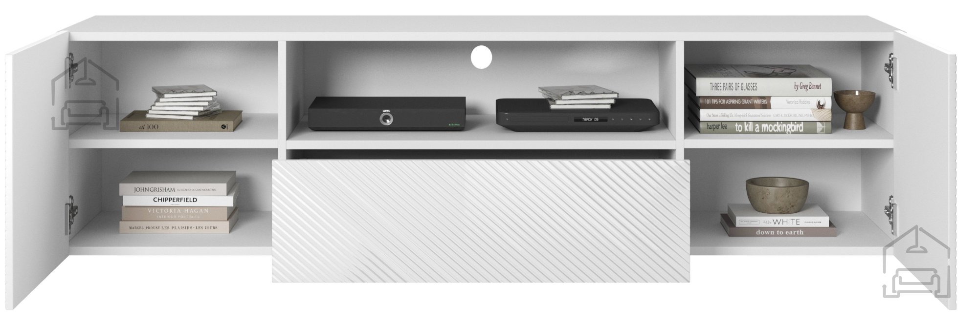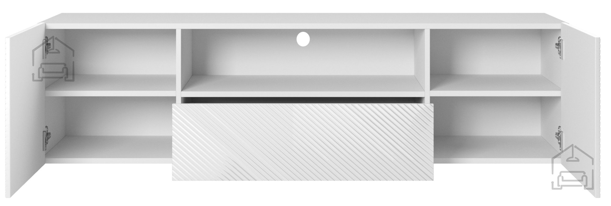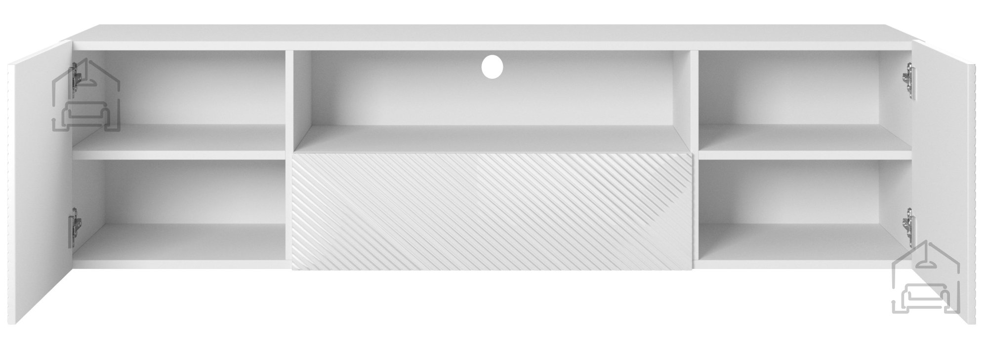 Verleihen Sie Ihrem Wohnzimmer einen modernen Touch mit der Wand-TV-Kommode Asha 167 2D1SZ, die Eleganz und Funktionalität in einem stilvollen Möbelstück vereint. Mit ihrer hochglänzenden weißen Oberfläche und dem klaren, minimalistischen Design wird sie schnell zum Blickfang in jedem modernen Wohnraum.