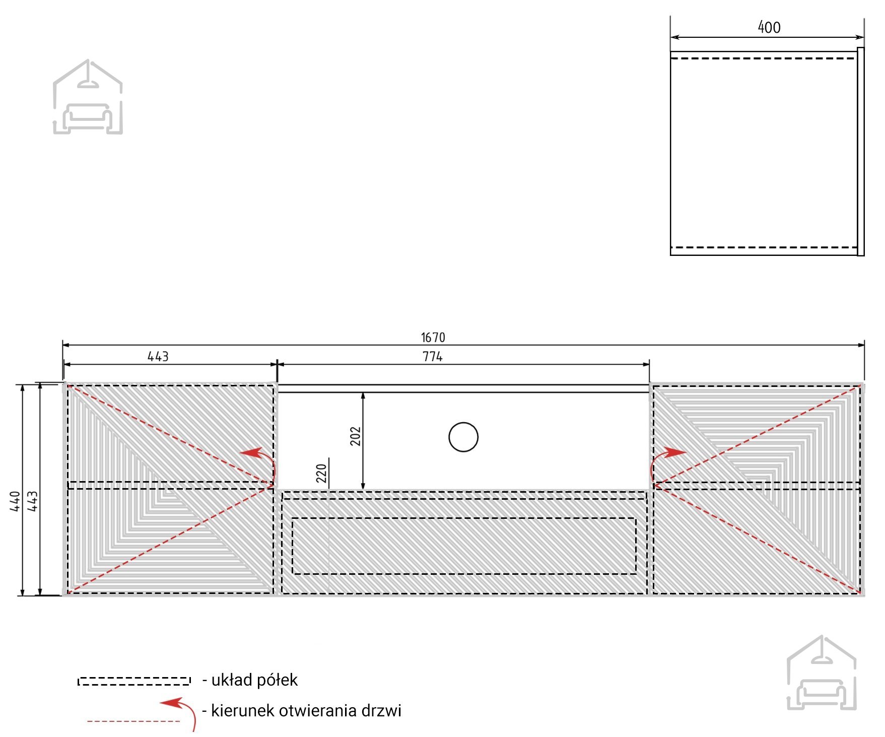 Der Korpus besteht aus einer 16 mm starken laminierten Platte, die kratzfest und widerstandsfähig gegenüber täglicher Abnutzung ist.