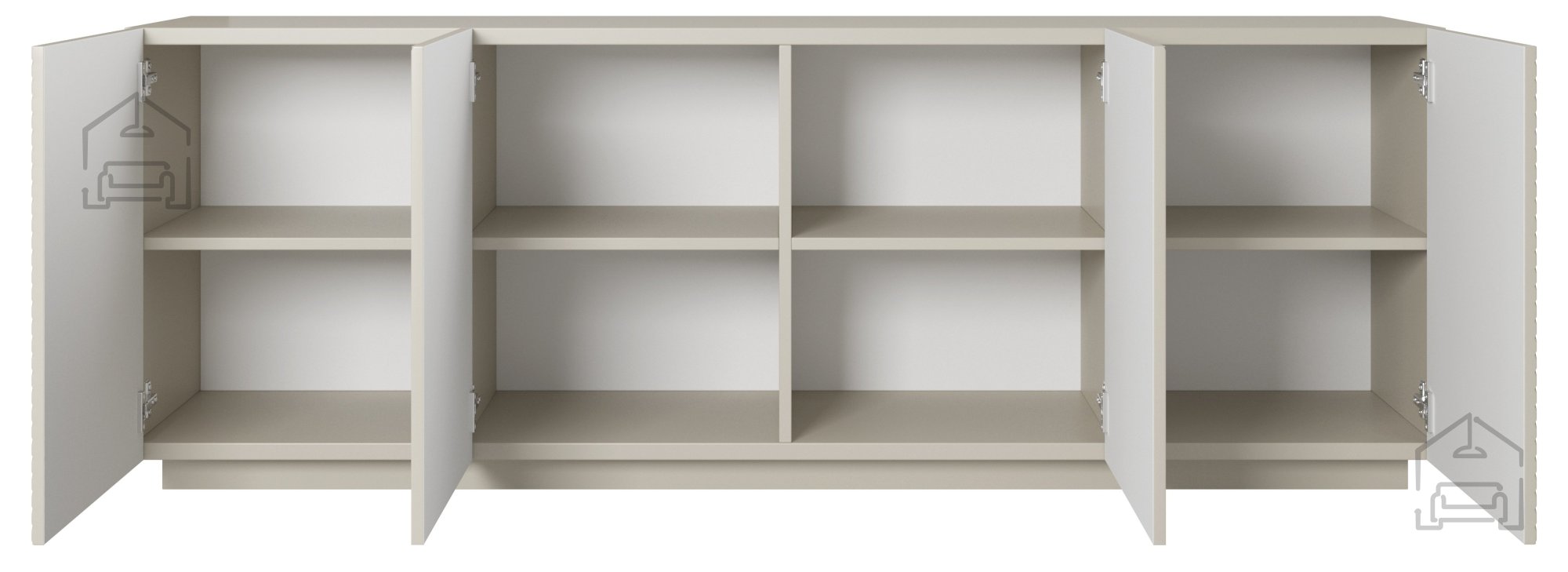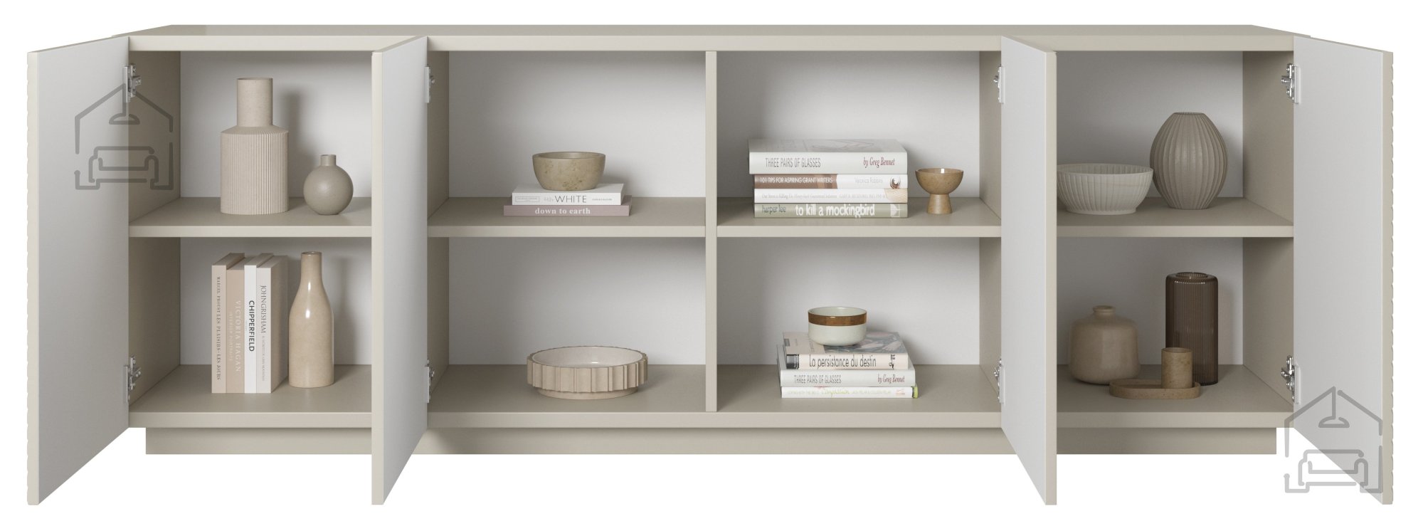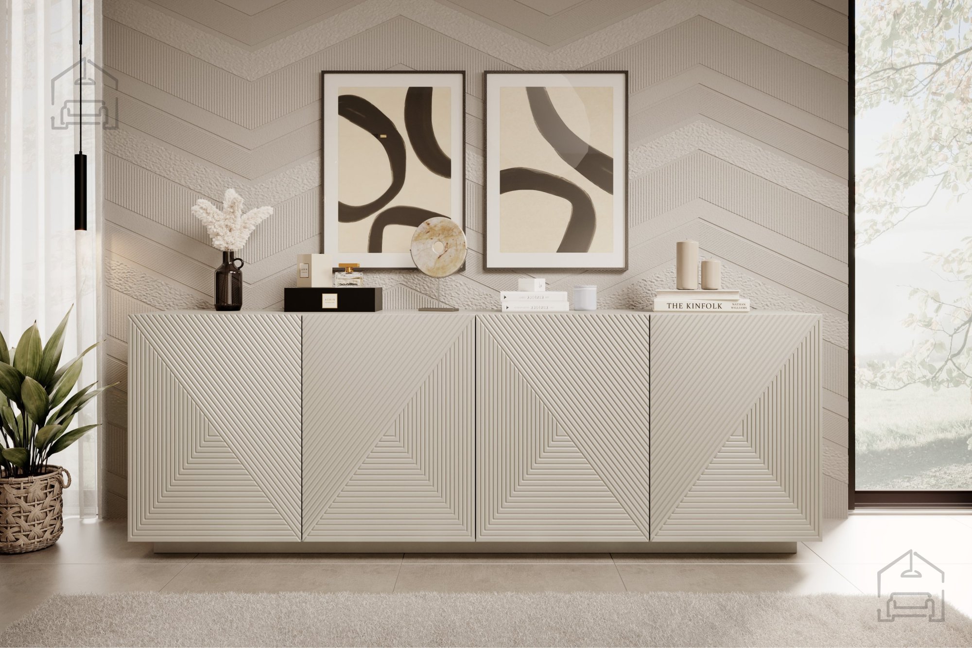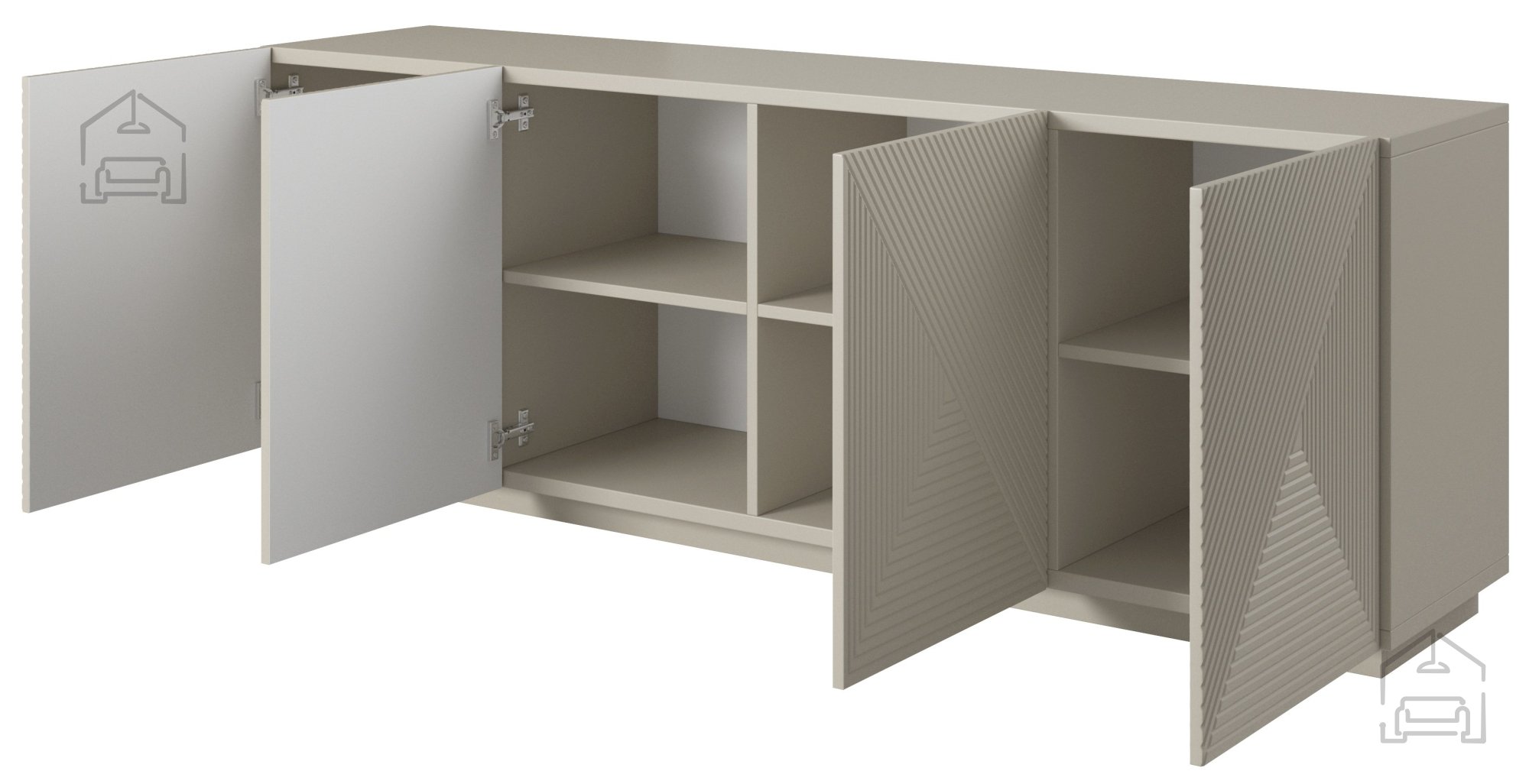 Wir präsentieren Ihnen die Kommode auf Sockel Asha 200 4D in einem edlen Kaschmir-Ton, die Ihrem Zuhause einen Hauch von Eleganz und praktischer Raffinesse verleiht. Dieses außergewöhnliche Möbelstück vereint modernes Design mit hochwertiger Verarbeitung und wird so zu einem unverzichtbaren Bestandteil jedes Wohnraums.