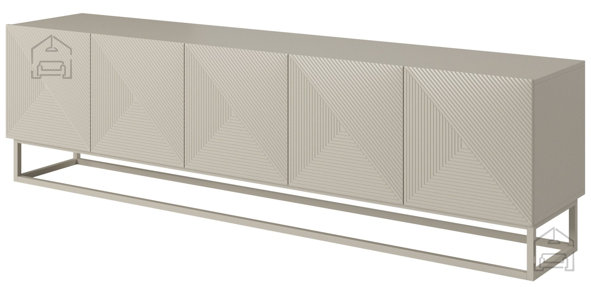 Wir präsentieren Ihnen die TV-Kommode Asha 200 5D, die modernes Design und Funktionalität vereint und mit ihrem eleganten Kaschmir-Farbton begeistert. Dieses außergewöhnliche Möbelstück ist so gestaltet, dass es zum Mittelpunkt Ihres Wohnzimmers wird und jedem Raum eine edle Note verleiht.