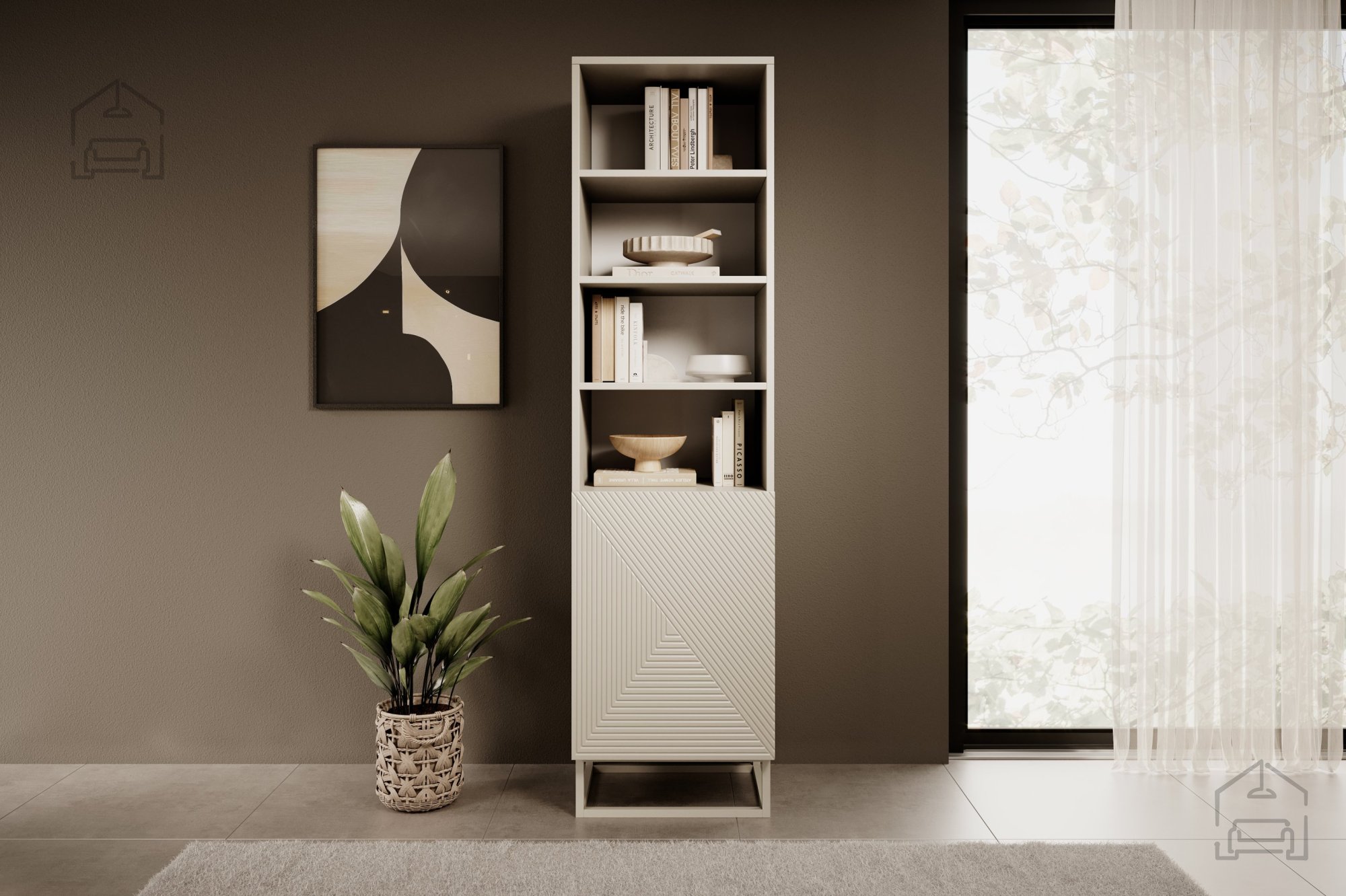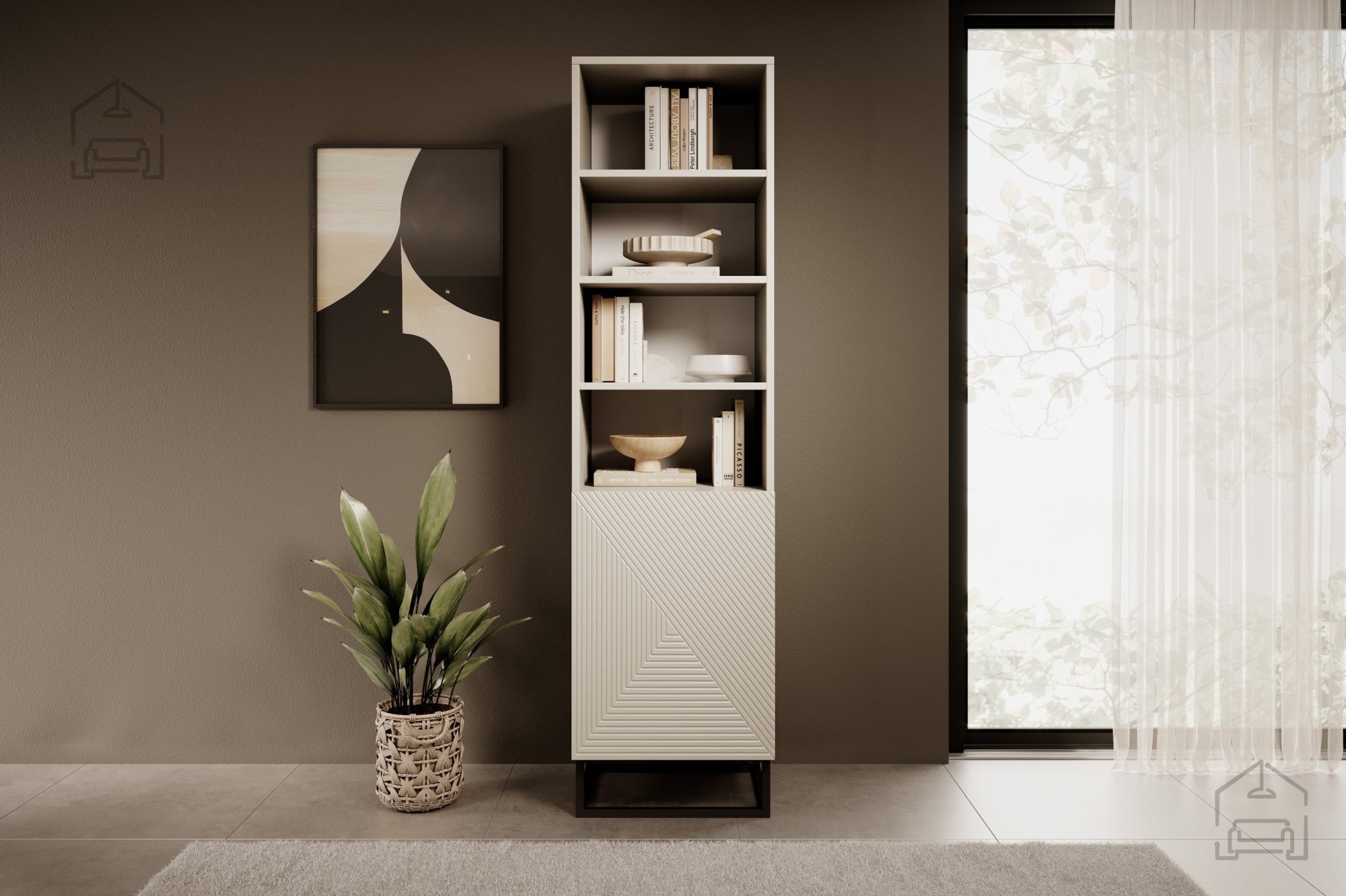 Bringen Sie mit dem Regal mit Metallrahmen Asha 50 1D einen Hauch von Eleganz und Zweckmäßigkeit in Ihr Zuhause. Seine zeitlose Schönheit und Vielseitigkeit machen es zu einer idealen Ergänzung für jeden Raum – ob im Wohnzimmer, Büro oder Schlafzimmer. Zögern Sie nicht und investieren Sie in Qualität, die Sie viele Jahre begleiten wird.