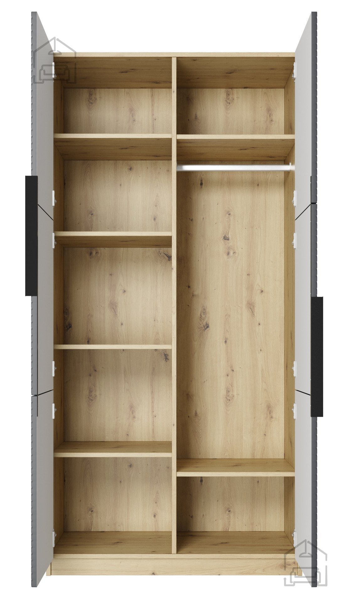 Der Kleiderschrank Asha 100 2D überzeugt nicht nur durch sein elegantes Design, sondern auch durch seine hohe Funktionalität. Das Soft-Close-System ermöglicht ein leises Schließen der Türen – ideal in den frühen Morgen- oder späten Abendstunden, wenn Sie niemanden stören möchten. Im Inneren bietet der Schrank durchdacht angeordneten Stauraum mit Kleiderstange, Ablageflächen und weiteren Fächern für eine optimale Organisation Ihrer Garderobe.