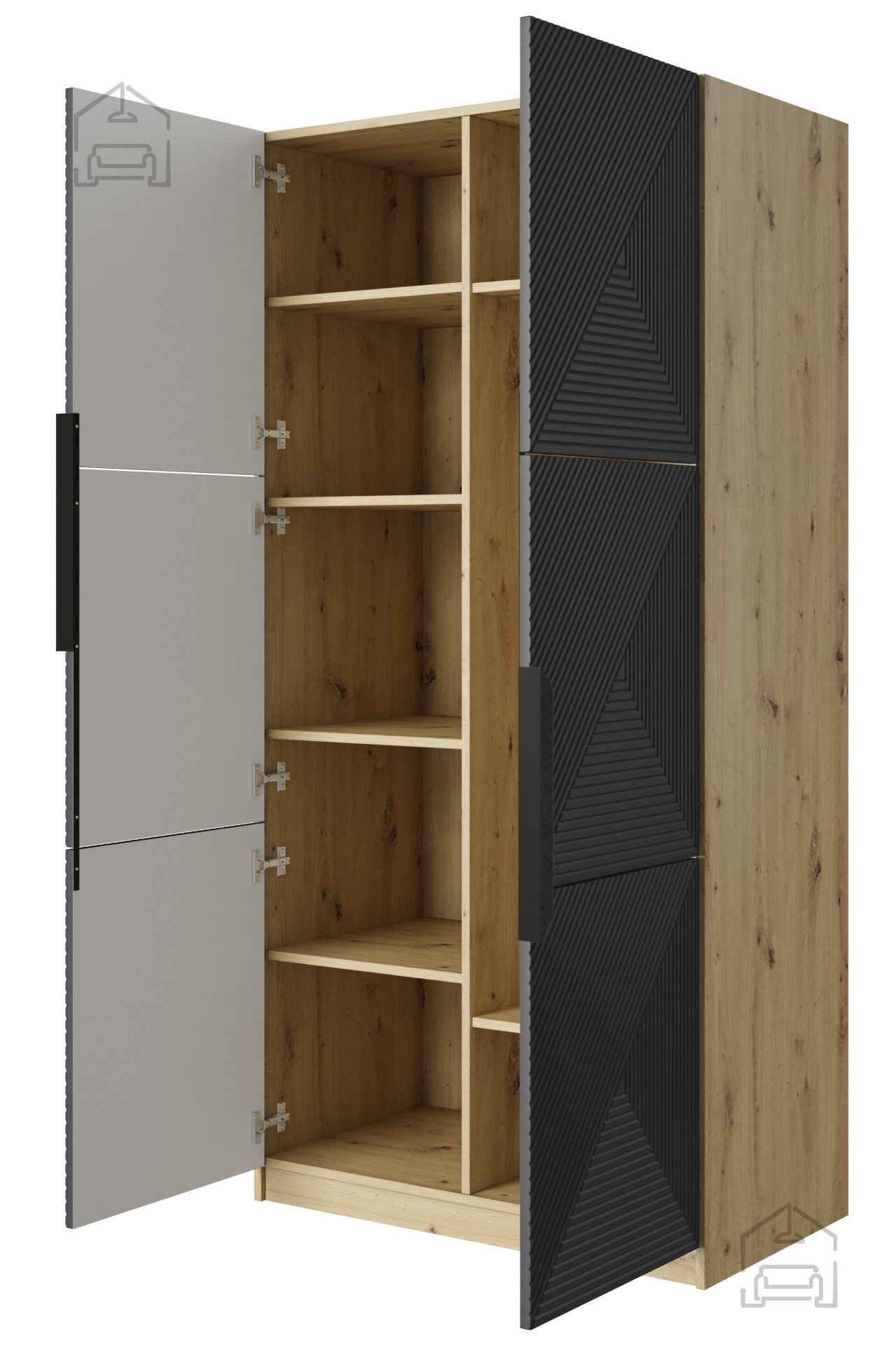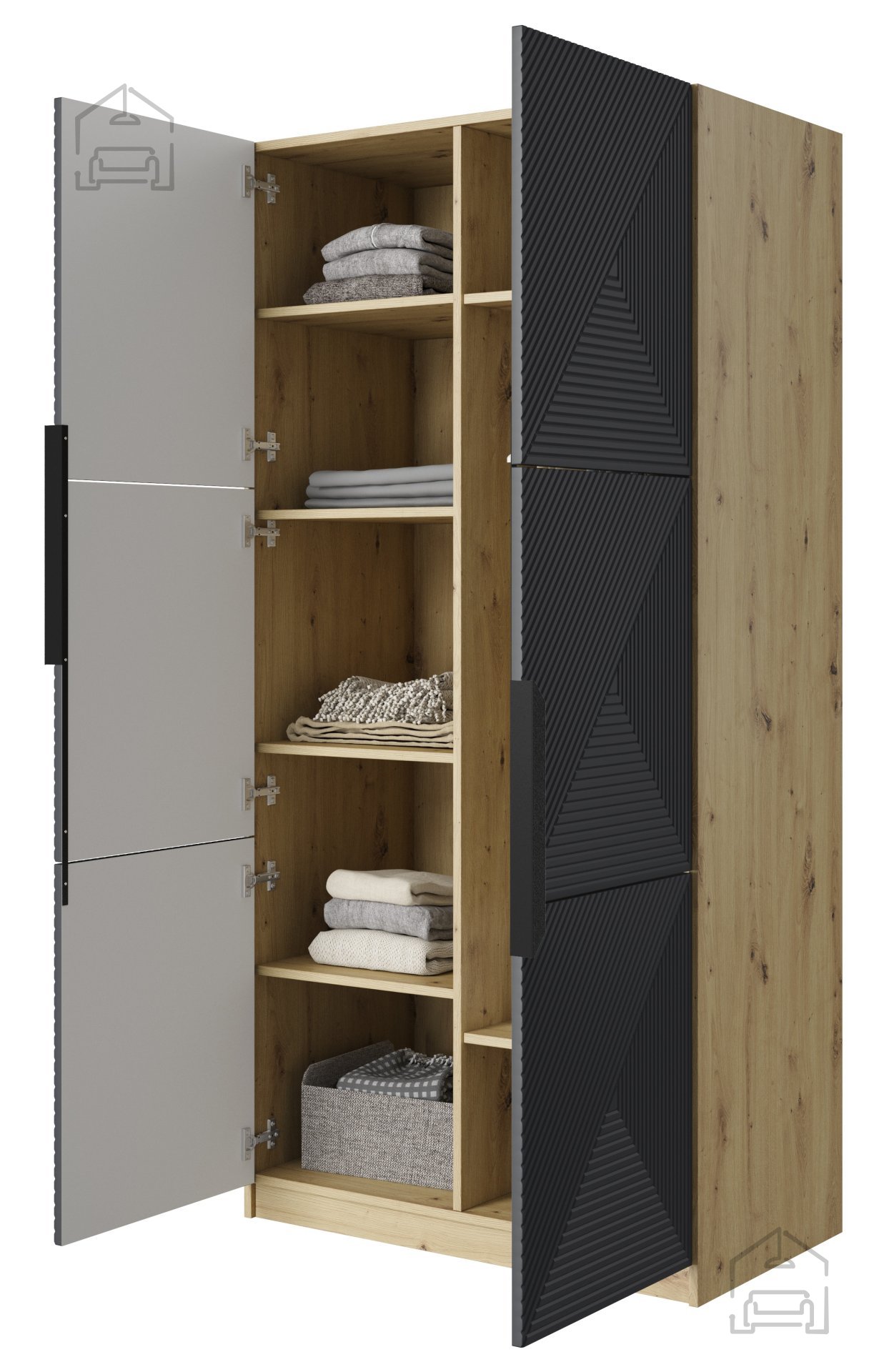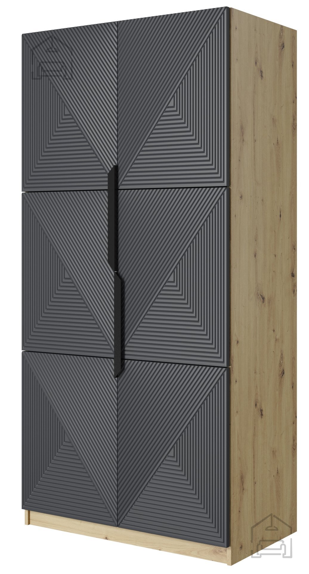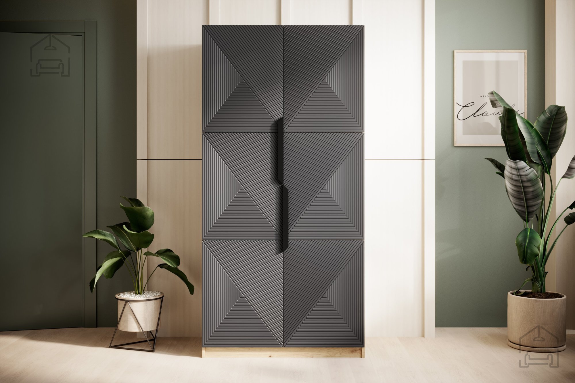 Der Schrank Asha 100 2D wird aus erstklassigen Materialien gefertigt, die Stabilität und Langlebigkeit garantieren.