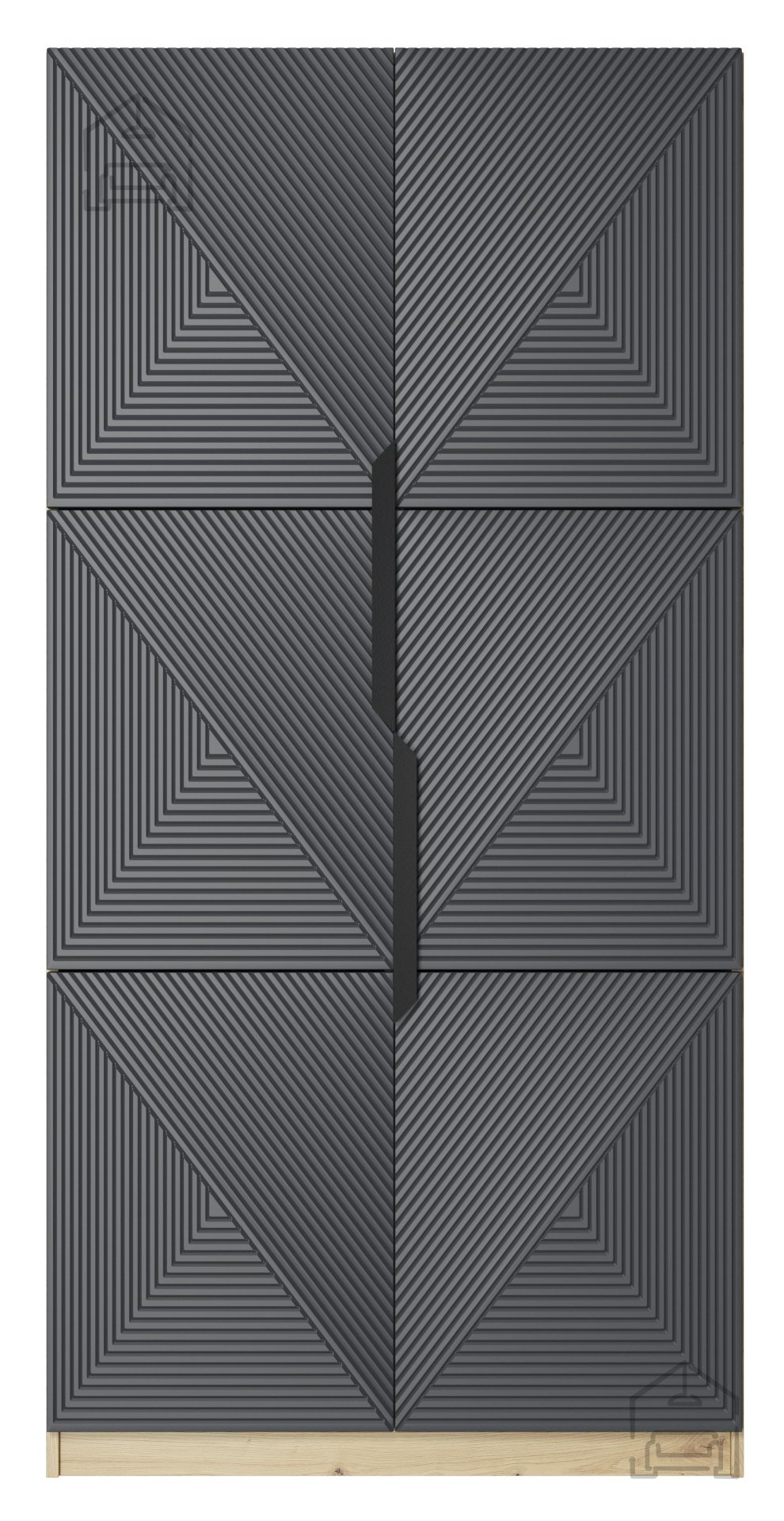Der Kleiderschrank Asha 100 2D mit Sockel ist die ideale Wahl für alle, die ihrem Zuhause einen Hauch moderner Eleganz und praktischen Komfort verleihen möchten. Mit den Maßen 100x57x205 cm passt dieser Schrank perfekt in verschiedene Räume – vom Schlafzimmer bis zum Vorzimmer – und bietet ausreichend Platz für Kleidung und Accessoires.
