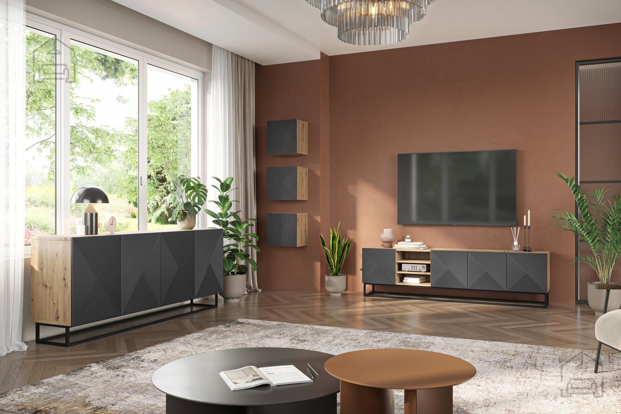 Der pulverbeschichtete Metallrahmen schützt zuverlässig vor Korrosion und verleiht den Möbeln Stabilität und einen modernen Look. Das Push-to-Open-System ermöglicht ein einfaches Öffnen, während die Soft-Close-Funktion ein leises Schließen sicherstellt – ideal für den täglichen Gebrauch. So entsteht ein Möbelstück, das sich sowohl im Wohnzimmer als auch im Schlafzimmer perfekt einfügt.