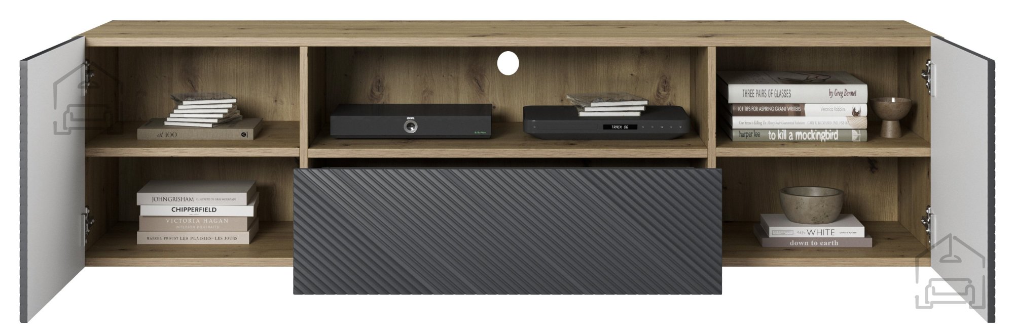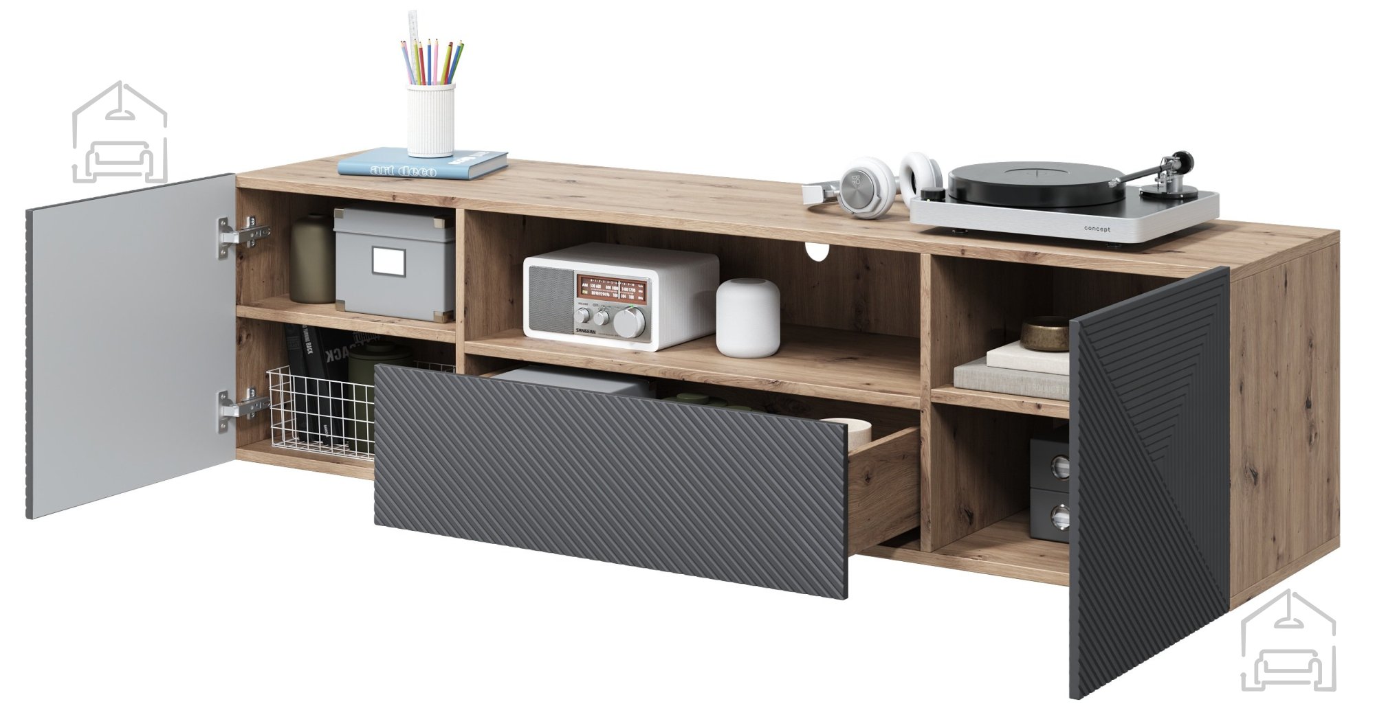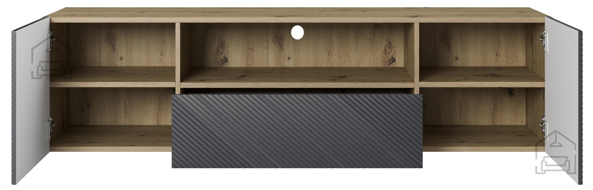 Wir präsentieren Ihnen die TV-Wandkommode Asha 167 2D1SZ, die modernes Design und praktische Nutzung perfekt vereint. Mit ihren Maßen von 167x40x44 cm ist sie die ideale Lösung für jedes Zuhause, in dem Stil und Funktionalität großgeschrieben werden. Gefertigt aus hochwertigen Materialien bringt diese Kommode einen Hauch von Luxus und Behaglichkeit in jeden Raum.