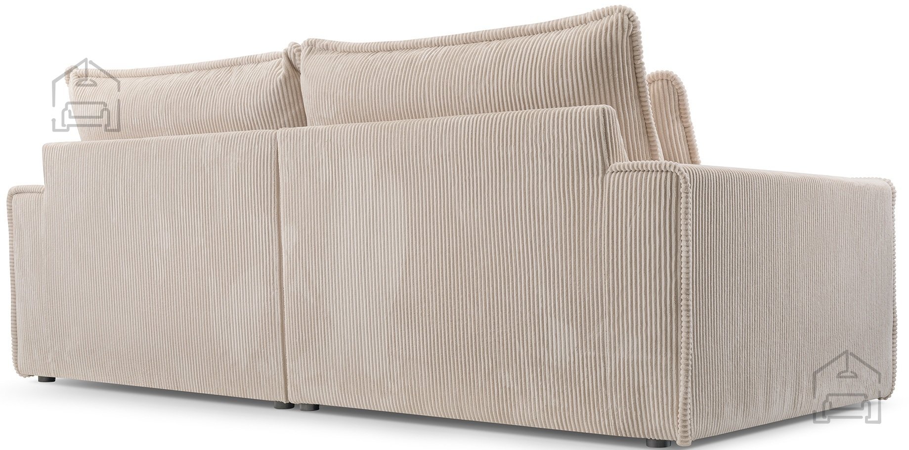 Die Holzkonstruktion, ergänzt durch laminierte Spanplatte und Faserplatte, sorgt für außergewöhnliche Stabilität und Langlebigkeit des Zweisitzers. Schwarze Kunststofffüße verleihen ihm einen modernen Touch und bieten gleichzeitig sicheren und stabilen Halt.