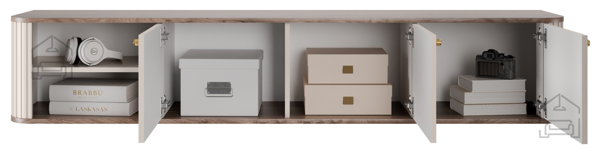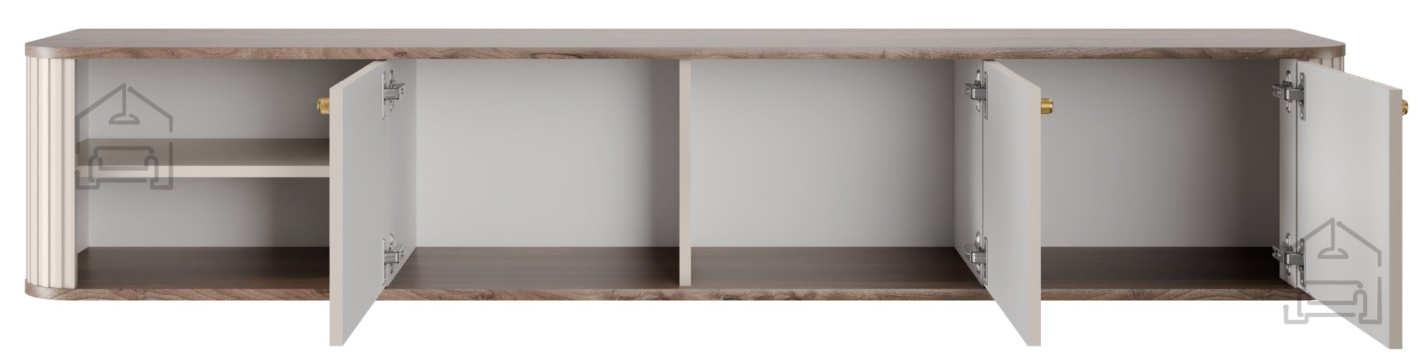 Erleben Sie die perfekte Verbindung von Stil und Funktionalität mit unserer hängenden TV-Kommode Vesper 187 3D. Dieses edle Möbelstück aus hochwertigen Materialien verleiht Ihrem Wohnraum ein Gefühl von Komfort und dezentem Luxus.