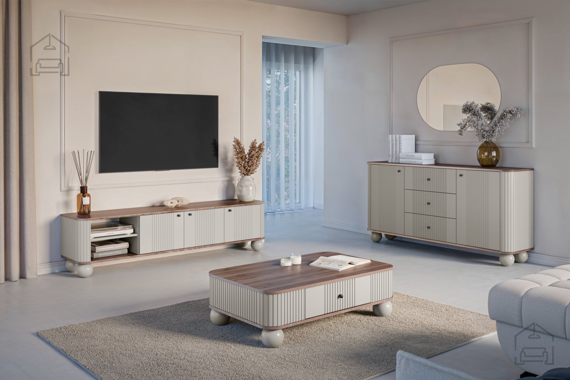 Wenn Sie Möbel suchen, die modernes Design mit hochwertiger Verarbeitung verbinden, ist das Wohn- und Schlafzimmer Vesper die ideale Wahl. Die Kombination aus Kaschmir, Nussbaum und goldenen Details fügt sich harmonisch in jedes Zuhause ein. Ob Sie Ihr Wohnzimmer oder Schlafzimmer neu gestalten – Vesper bietet Vielseitigkeit und Eleganz auf höchstem Niveau.