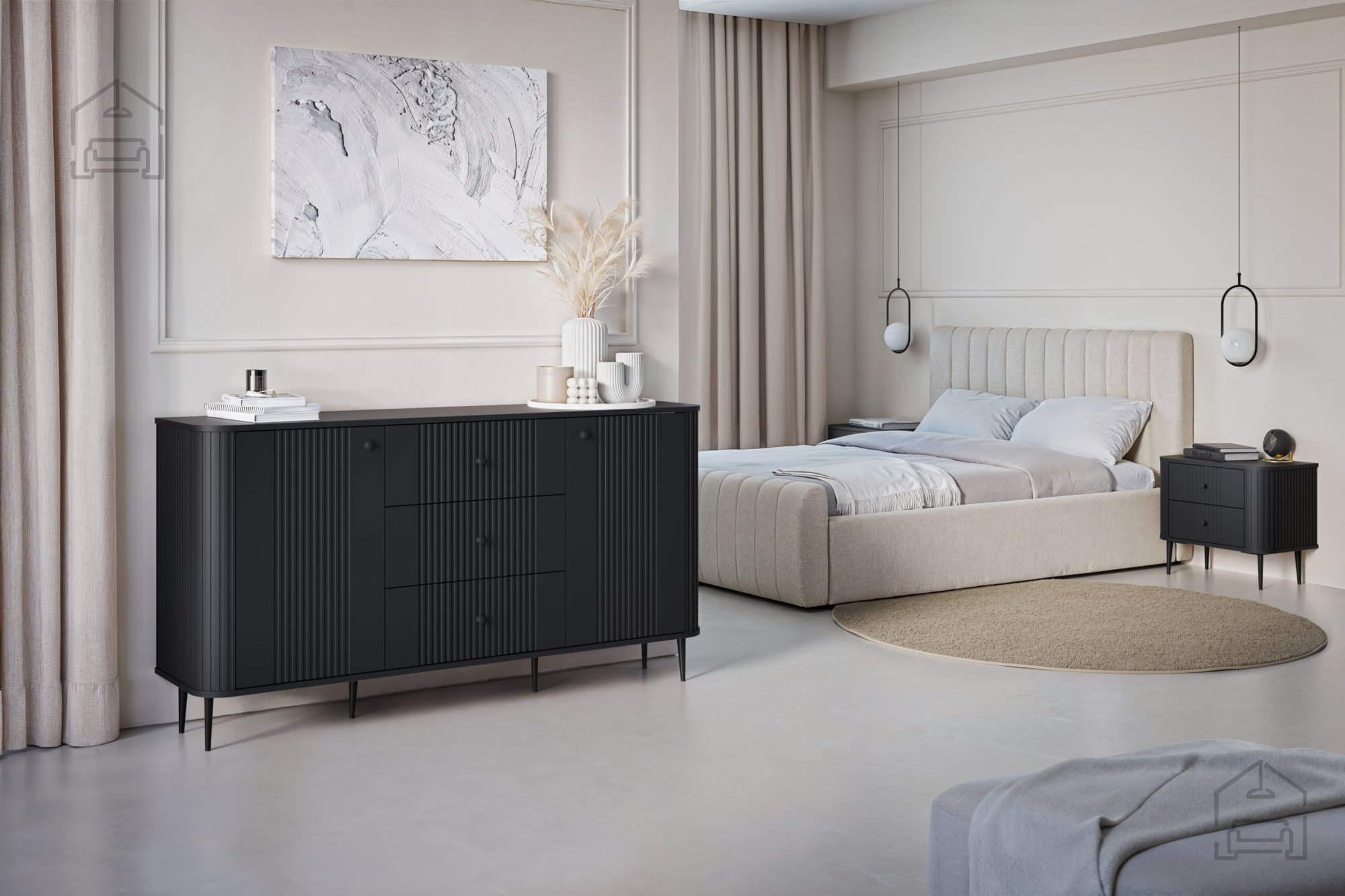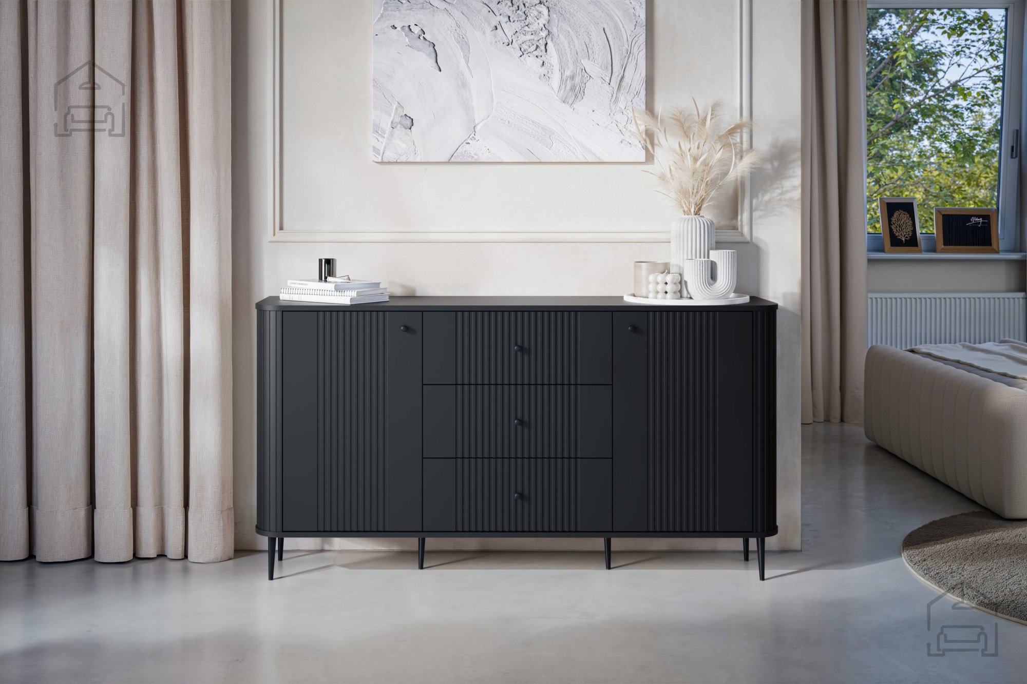 Die Kommode Vesper 160 2D3SZ wurde mit Blick auf modernes Design und Alltagstauglichkeit entworfen. Mit den Maßen 160x38x85 cm passt sie ideal in jeden Raum – ob Wohnzimmer, Schlafzimmer oder Büro. Ihr elegantes Schwarz harmoniert wunderbar mit verschiedensten Einrichtungsstilen, von minimalistisch bis industriell.