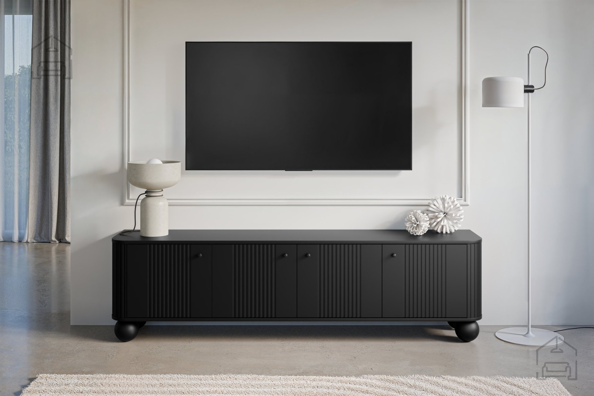 Erleben Sie die perfekte Harmonie aus ansprechendem Design und praktischer Alltagstauglichkeit mit der außergewöhnlichen TV-Kommode Vesper 187 4D. Diese schwarze Schönheit mit klaren Linien verleiht Ihrem Wohnzimmer einen Hauch moderner Eleganz und bietet zugleich reichlich Stauraum.
