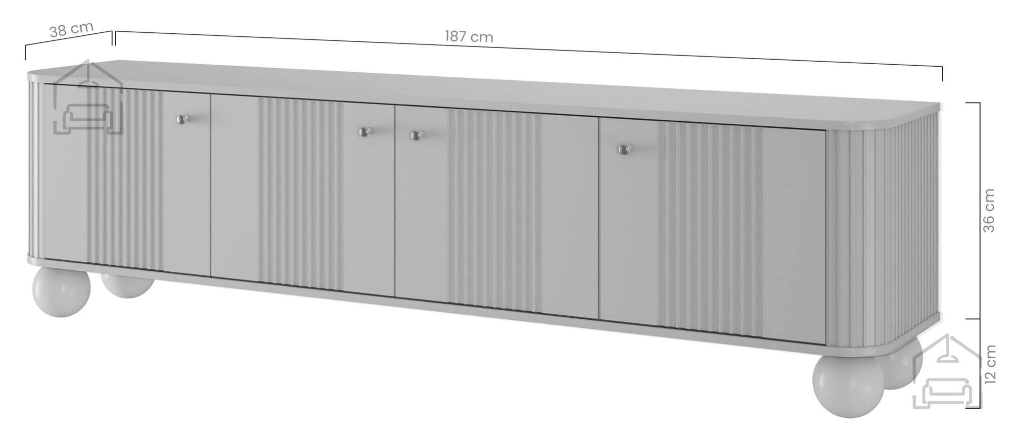 Die TV-Kommode besteht aus einer 16 mm starken laminierten Platte, die Stabilität und Langlebigkeit garantiert. Die Fronten sind aus MDF-Platte gefertigt und mit einer PVC-Folie überzogen, die nicht nur schützt, sondern auch eine einfache Reinigung ermöglicht. Die Kanten sind mit ABS-Band versehen, was die Oberfläche zusätzlich widerstandsfähig gegen Stöße und Abnutzung macht.