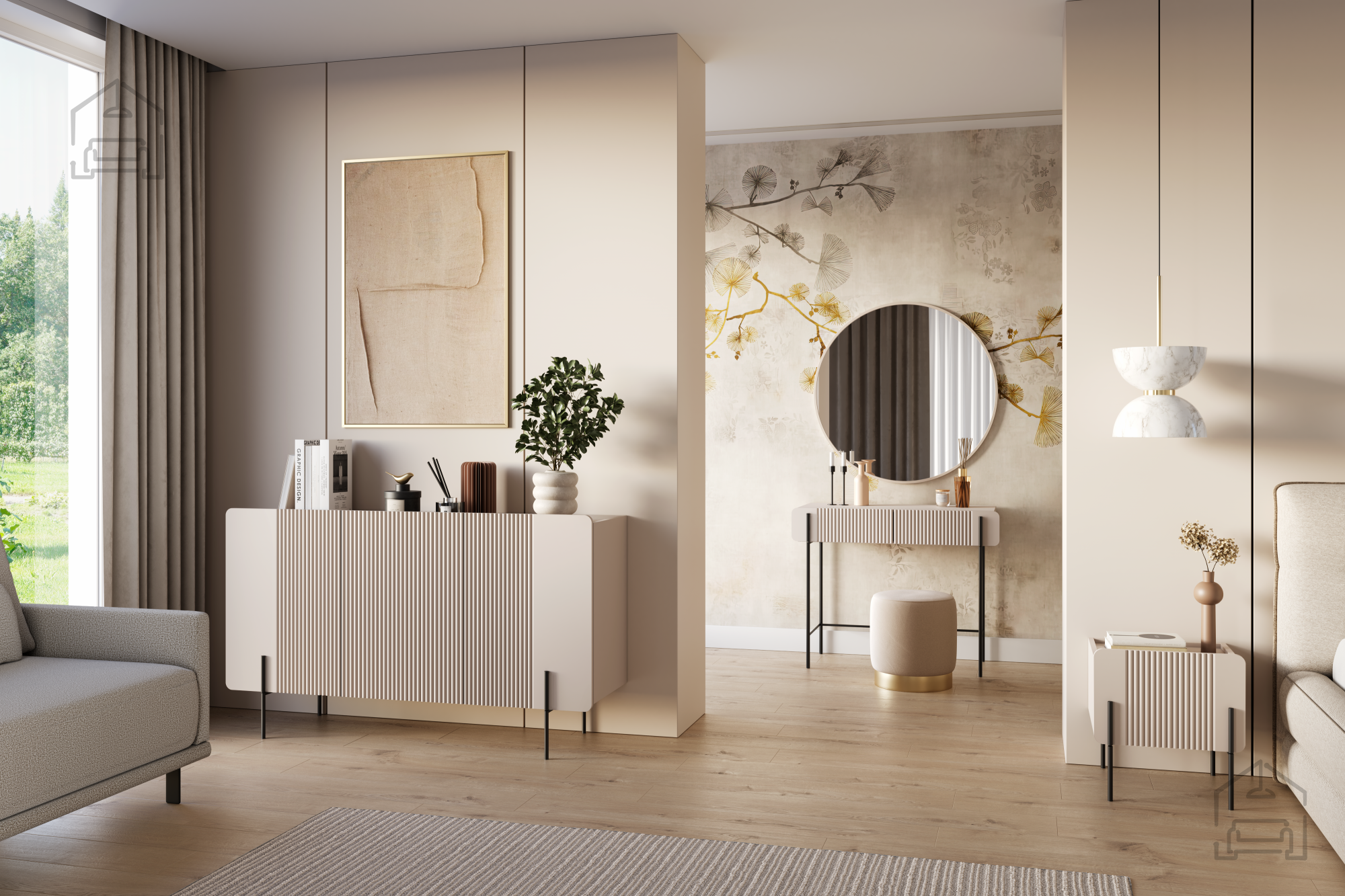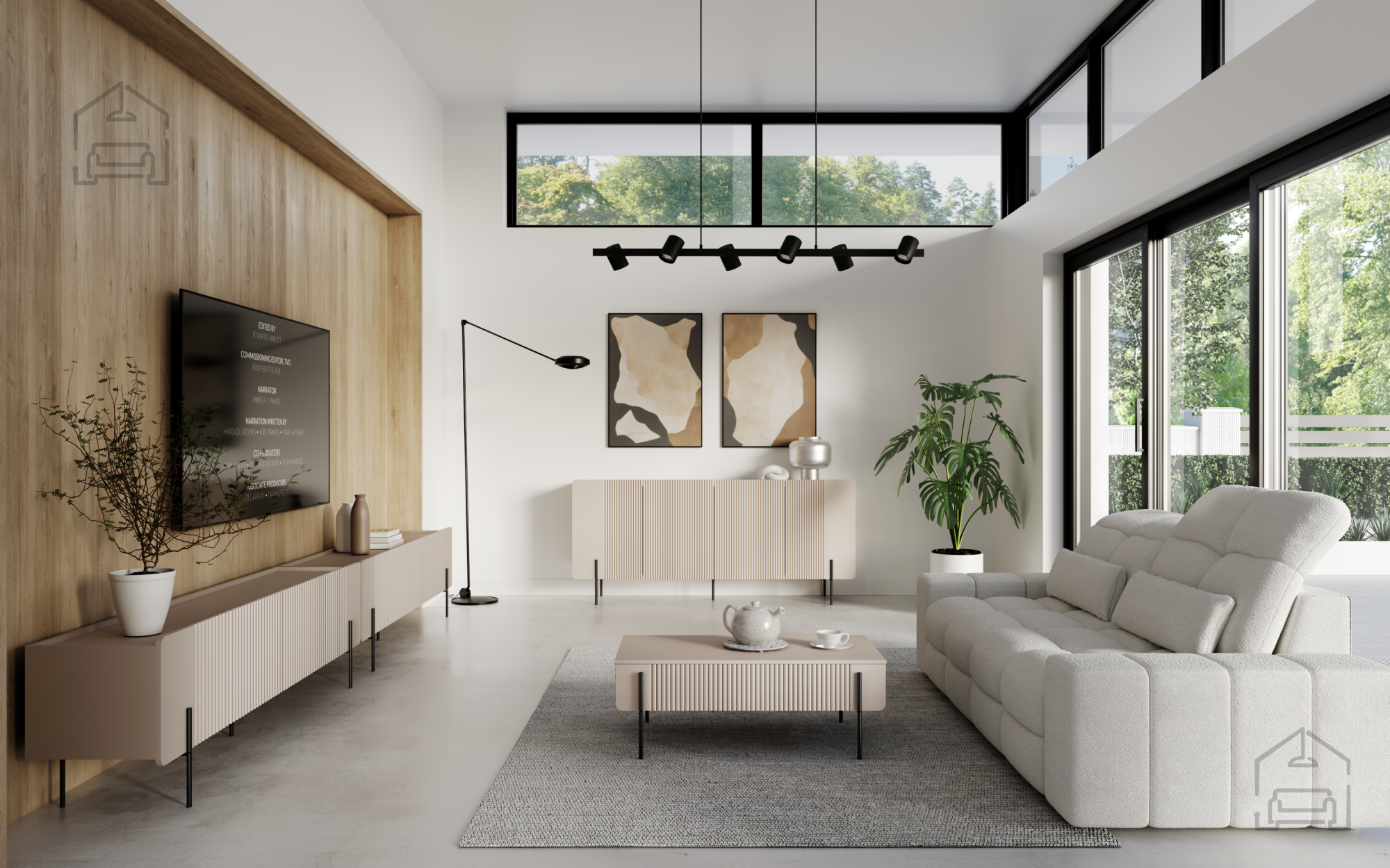 Verleihen Sie Ihrem Zuhause einen neuen Look mit einer einzigartigen Möbelkollektion, die Funktionalität und Stil harmonisch vereint. Wir präsentieren Ihnen das Wohn- und Schlafzimmer Malmi in edlem Kaschmirton mit modernen schwarzen Beinen – ein echter Blickfang für Ihr Zuhause.
