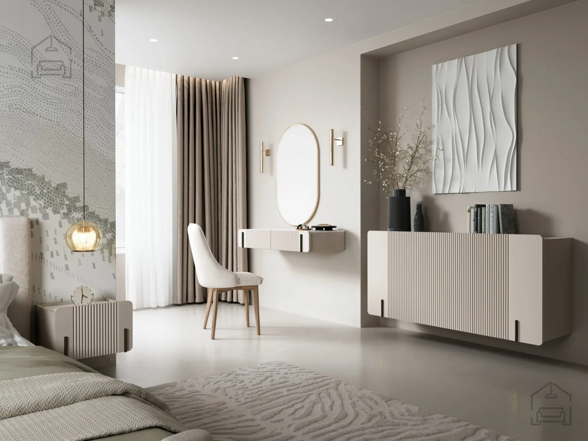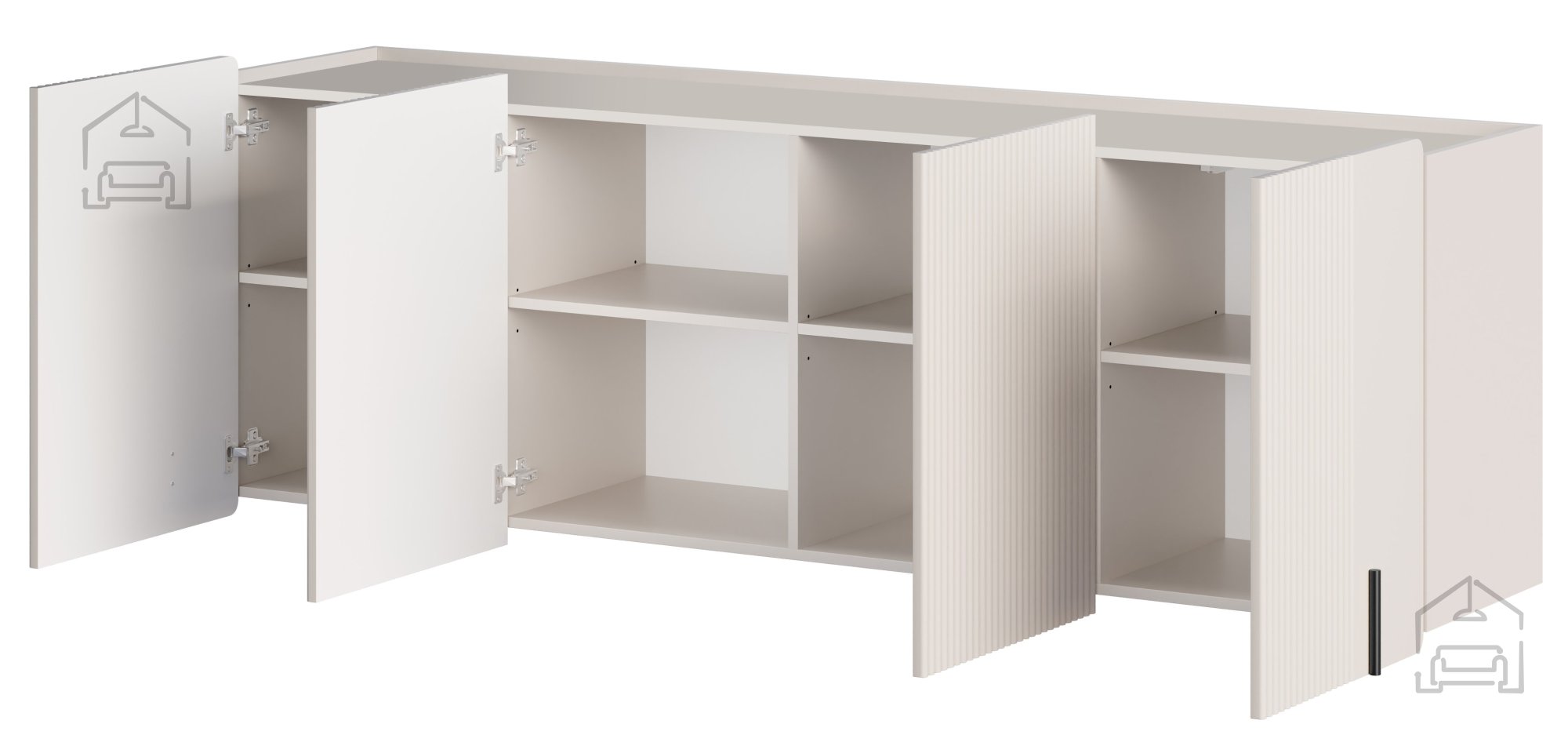 Mit den Maßen 200x42x70 cm fügt sich die Wandkommode Malmi harmonisch in verschiedenste Räume ein – ob Wohnzimmer oder Schlafzimmer. Die Kombination aus Kaschmirfarbe und schwarzem Dekor sorgt für ein stilvolles, modernes Erscheinungsbild, das zu vielen Wohnstilen passt. Im Inneren bietet die Kommode großzügigen Stauraum für eine aufgeräumte Organisation. Das Soft-Close-System ermöglicht ein leises und sanftes Schließen der Türen – ideal für den täglichen Gebrauch.