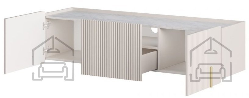 Wir präsentieren Ihnen die Wand-TV-Kommode Malmi 150 2D1SZ, die modernes Design mit hervorragender Funktionalität vereint. Mit ihrem edlen Kaschmir-Farbton und dem einzigartigen goldenen Dekor bringt diese Kommode einen Hauch von Eleganz in jedes Wohnzimmer. Hergestellt wird sie in der Bogart-Fabrik in Bosnien, was höchste Qualität und Liebe zum Detail garantiert.