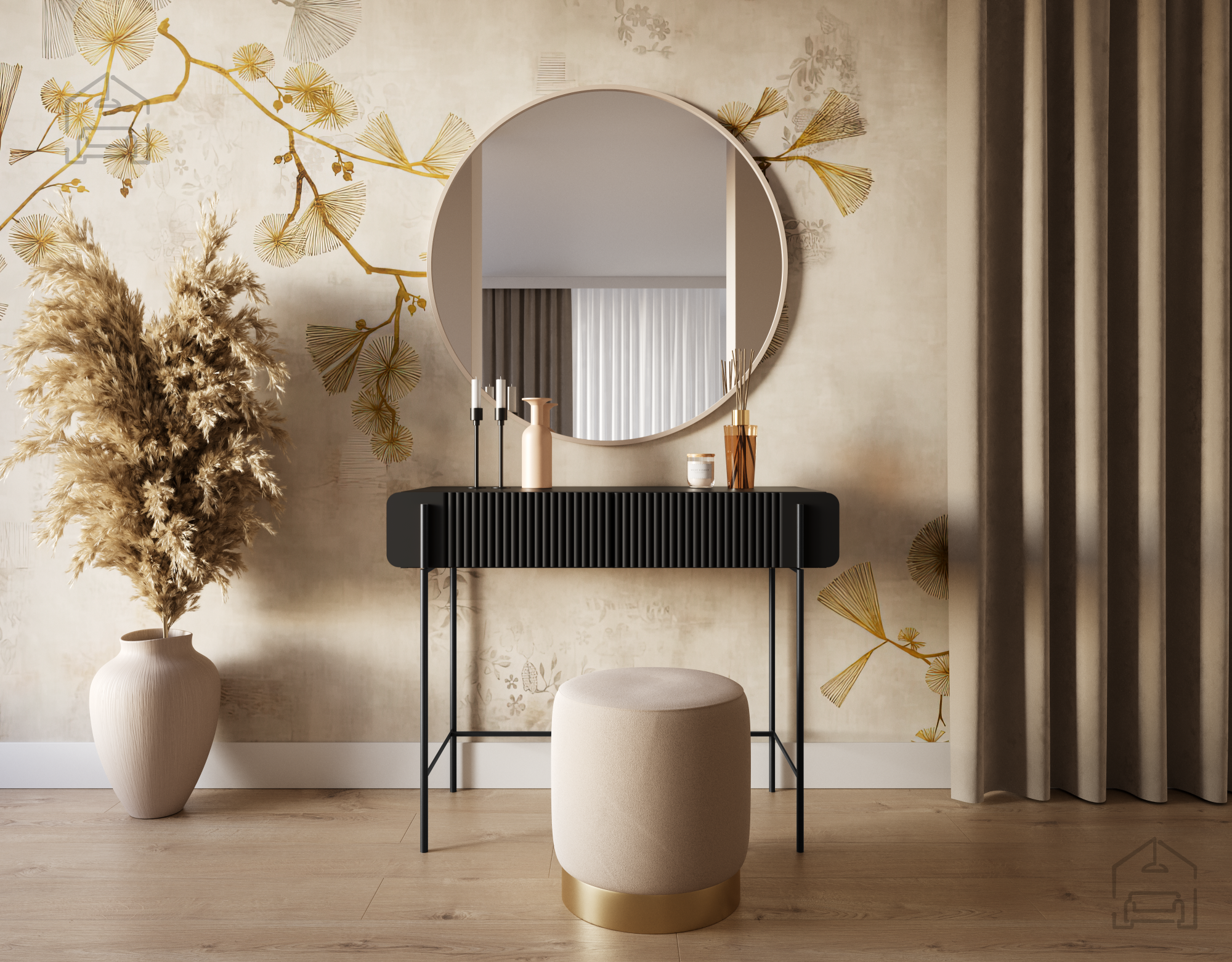 Tauchen Sie ein in eine Welt voller Stil und Raffinesse mit unserem Schminktisch 100 2SZ Malmi 60 4D, der modernes Design mit praktischer Funktionalität vereint. Dieses elegante schwarze Schmuckstück ist die perfekte Wahl für alle, die sich einen schönen Platz zum Schminken und Pflegen wünschen. Mit den Maßen 100x42x85 cm passt der Tisch mühelos in verschiedene Räume und bietet dennoch ausreichend Fläche für all Ihre Utensilien.