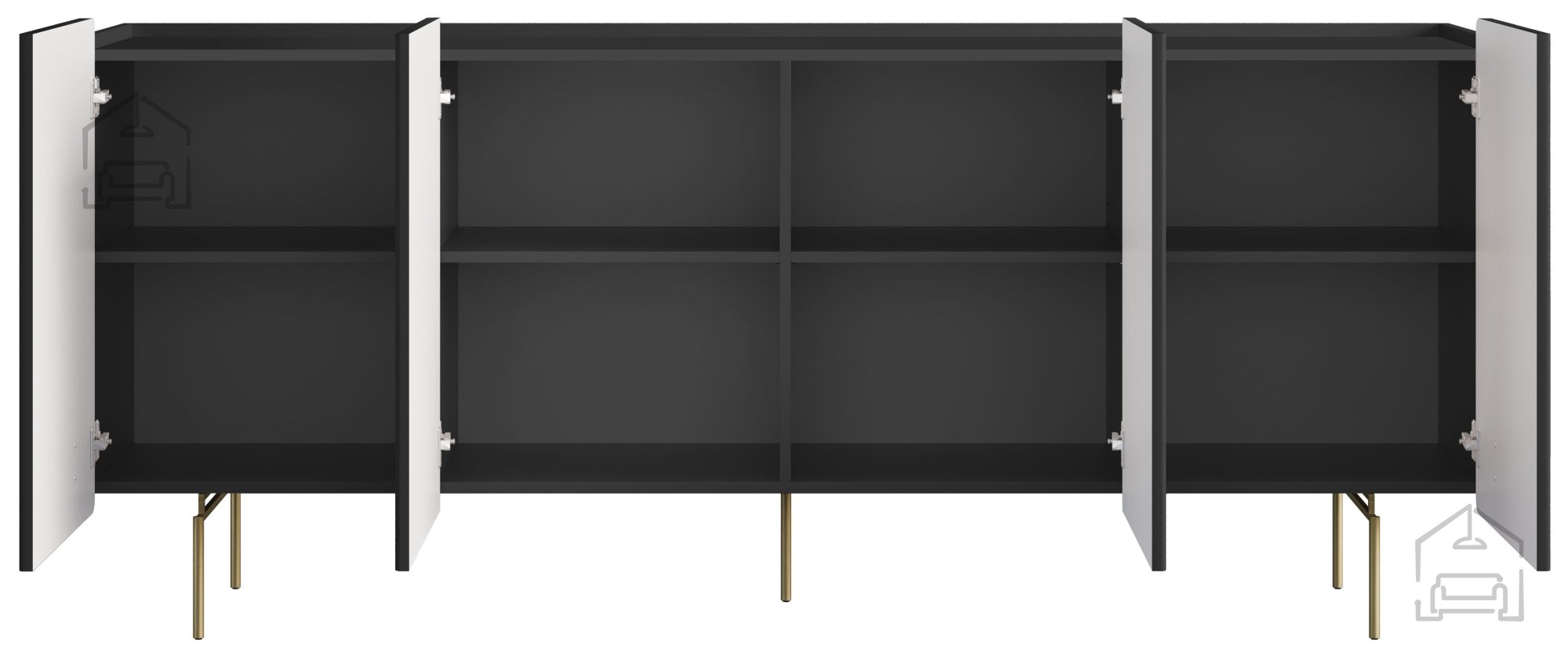 Wir präsentieren Ihnen die Kommode Malmi 200 4D, die modernes Design und praktische Nutzung perfekt vereint. Mit ihrer eleganten schwarzen Farbe und den glänzenden goldfarbenen Beinen wird dieses Möbelstück garantiert zum Blickfang in Ihrem Wohnzimmer. Ob Sie Ihrem Zuhause einen Hauch von Luxus verleihen oder einfach die Funktionalität verbessern möchten – diese Kommode ist die ideale Wahl.