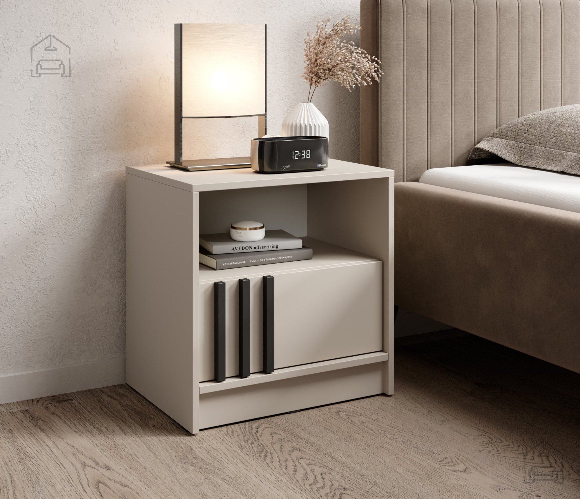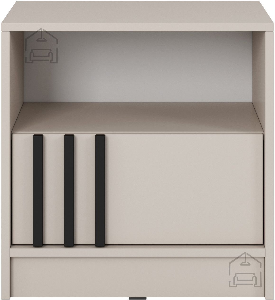 Wir präsentieren Ihnen das Nachtkästchen Nelly, das Eleganz und Funktionalität in einem Produkt vereint. Mit seinem modernen Design in der Farbkombination Kaschmir und Schwarz wird dieses Kästchen rasch zu einem unverzichtbaren Bestandteil Ihres Schlafzimmers. Gefertigt in der renommierten Fabrik Piaski in Polen, steht es für Qualität und Langlebigkeit, auf die Sie sich verlassen können.