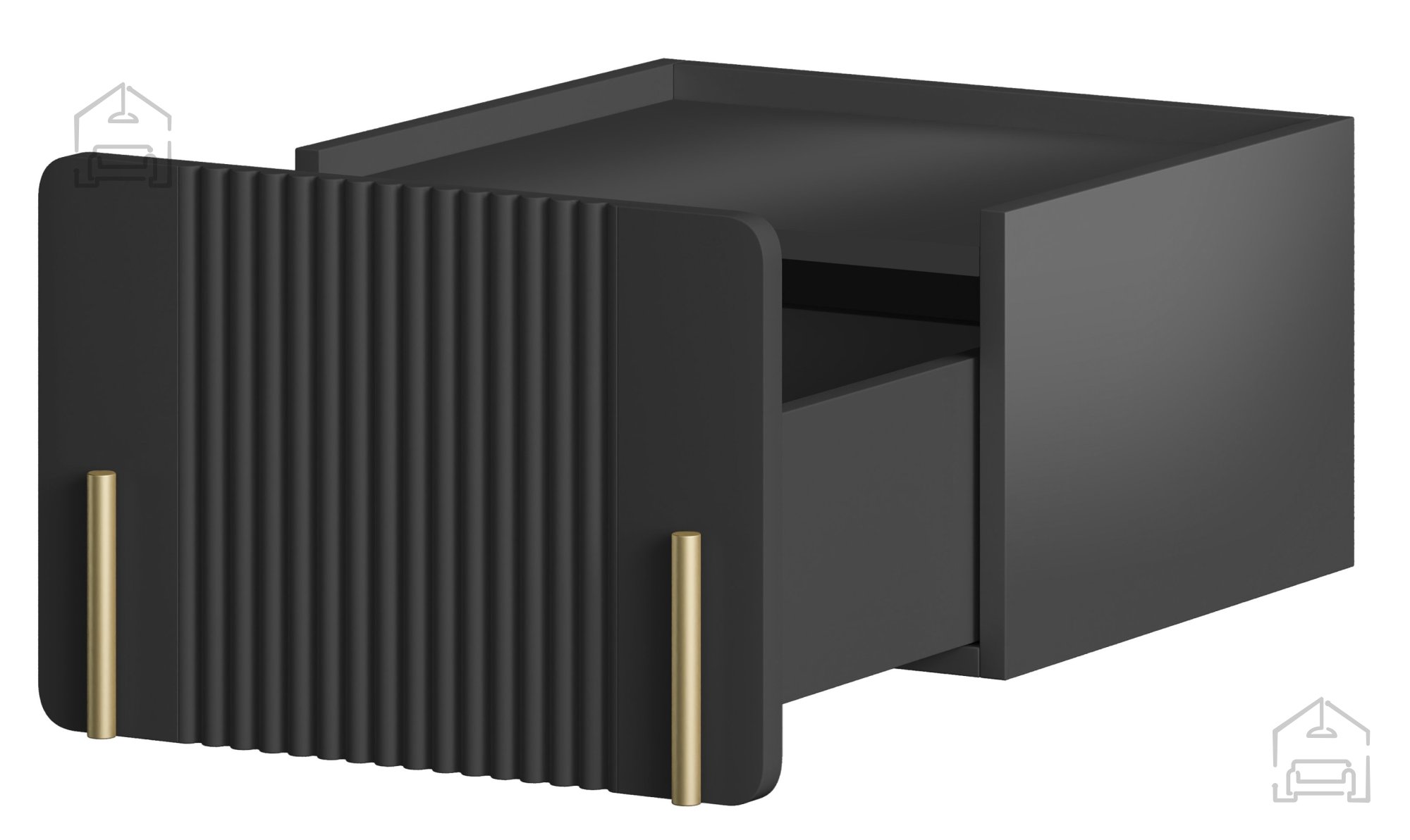 Das Wand-Nachtkästchen Malmi besticht durch seine elegante schwarze Farbe, die sich harmonisch in unterschiedlichste Einrichtungsstile einfügt. Goldfarbene Akzente verleihen dem Möbelstück einen Hauch von Luxus, der garantiert alle Blicke auf sich zieht. Gefertigt in der Bogart-Fabrik in Bosnien, überzeugt diese Kommode mit hochwertiger Verarbeitung, die auf Erfahrung und Tradition beruht.