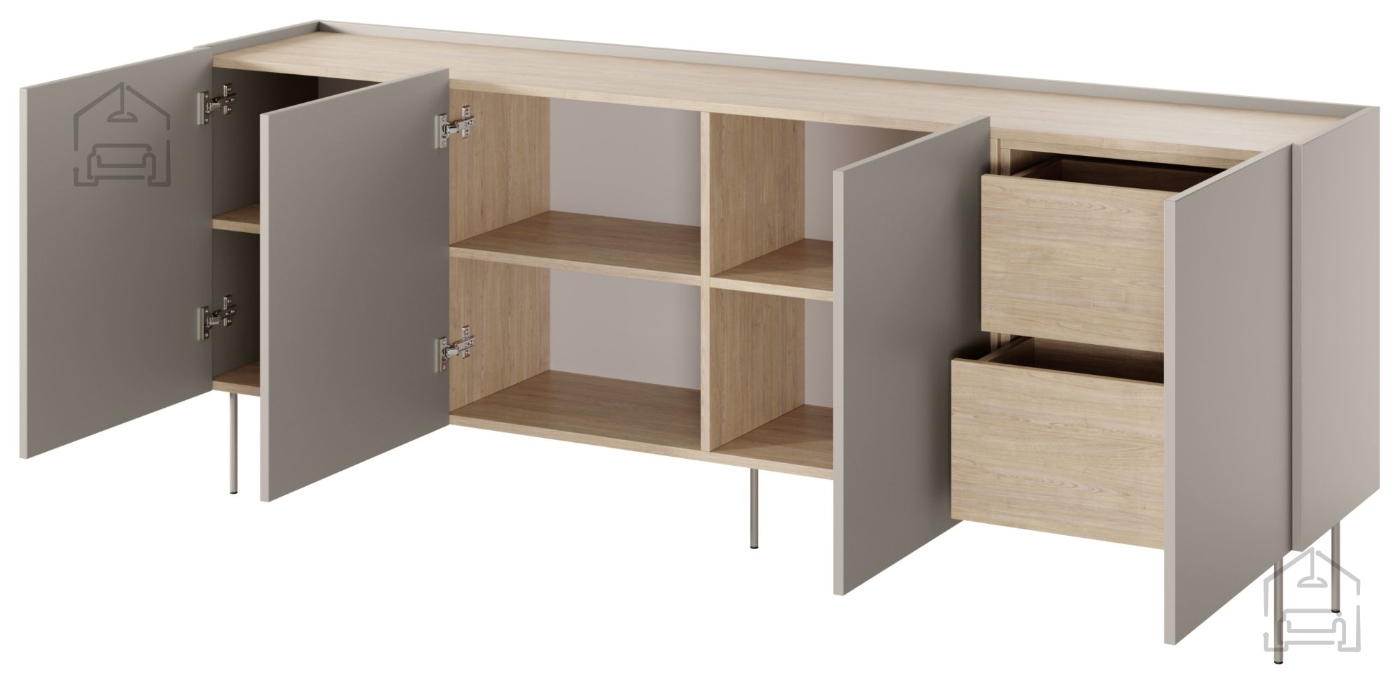 Entdecken Sie Eleganz und Funktionalität vereint in einem außergewöhnlichen Möbelstück – der Kommode Desin 220 4D2SZ in edlem Kaschmir-Ton. Diese Kommode überzeugt nicht nur durch ihre praktische Seite, sondern auch durch ihr stilvolles Erscheinungsbild, das modernes Design und Alltagstauglichkeit perfekt verbindet.