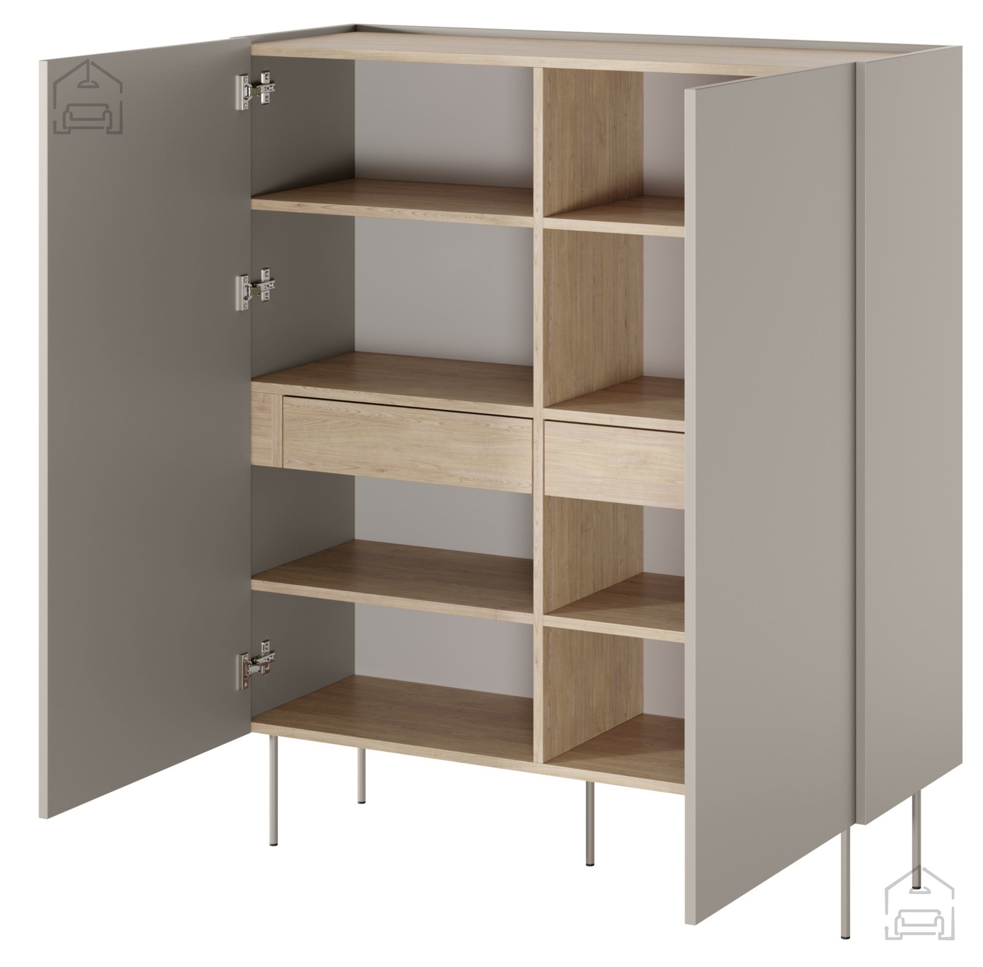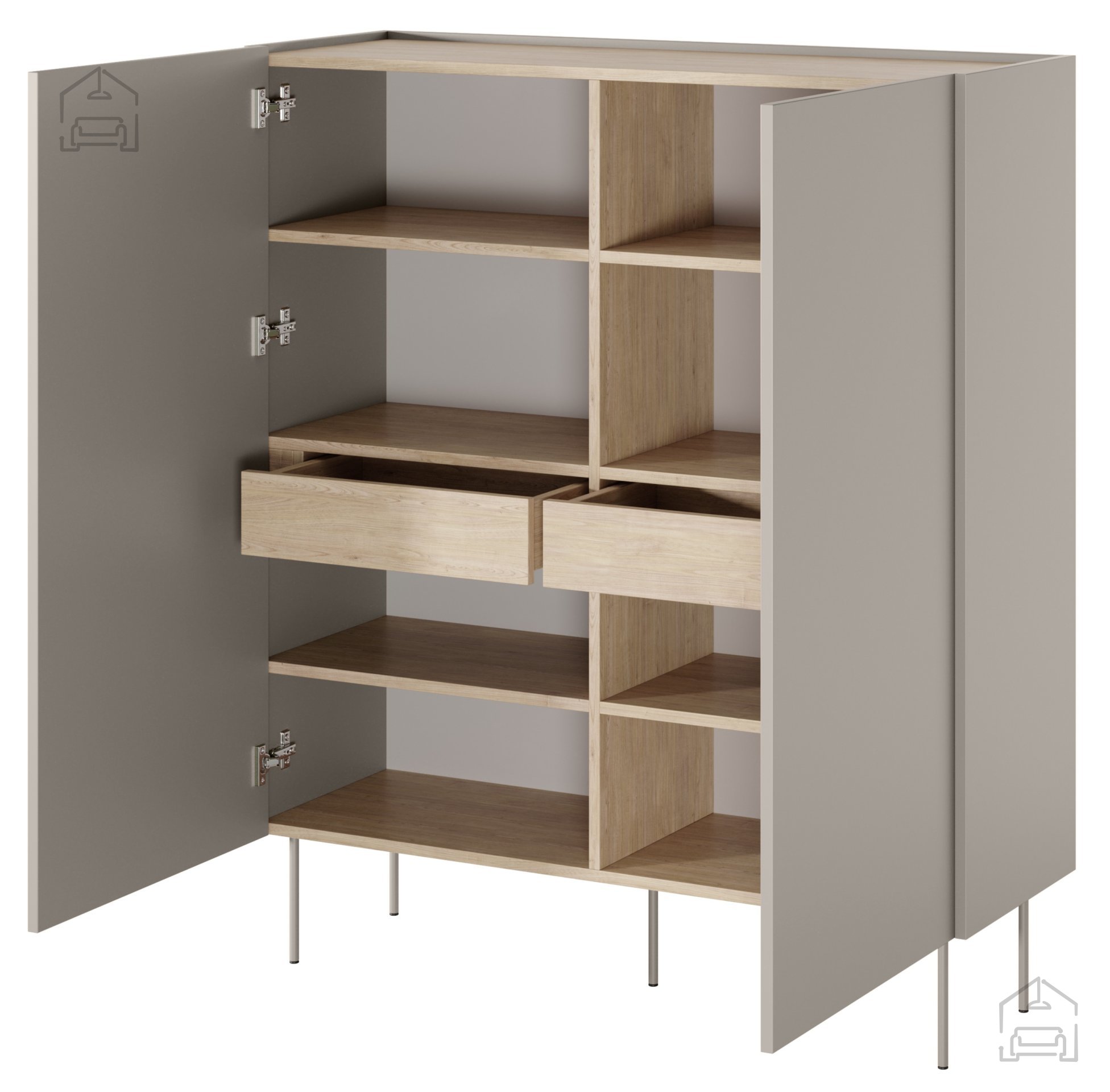 Entdecken Sie zeitlose Eleganz und Funktionalität mit der hohen Kommode Desin 120 2D2SZ in edlem Kaschmirfarbton. Dieses außergewöhnliche Möbelstück, entworfen für moderne Wohnräume, vereint ansprechendes Design mit praktischer Alltagstauglichkeit – die perfekte Wahl für jedes Zimmer, das einen Hauch von Raffinesse verdient.