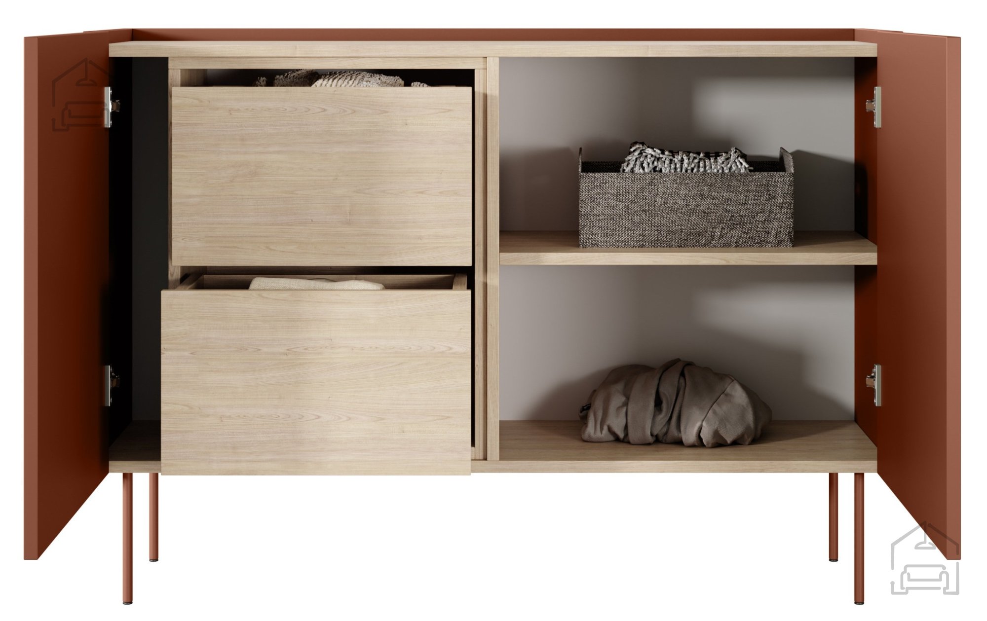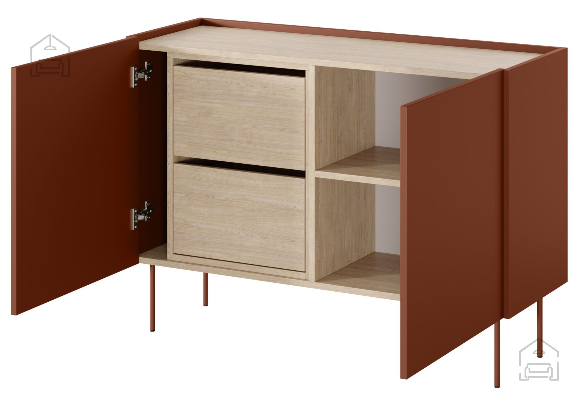 Wir präsentieren die Kommode Desin 120 2D2SZ, die zeitlose Eleganz mit moderner Funktionalität vereint. Dieses wunderschöne Möbelstück wurde so gestaltet, dass es jeden Raum mit Stil und Zweckmäßigkeit bereichert. Mit ihrem auffälligen Keramikrot ist diese Kommode die ideale Wahl für alle, die Wert auf Ästhetik und praktische Nutzung legen.