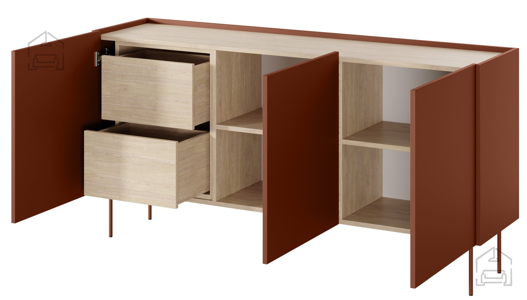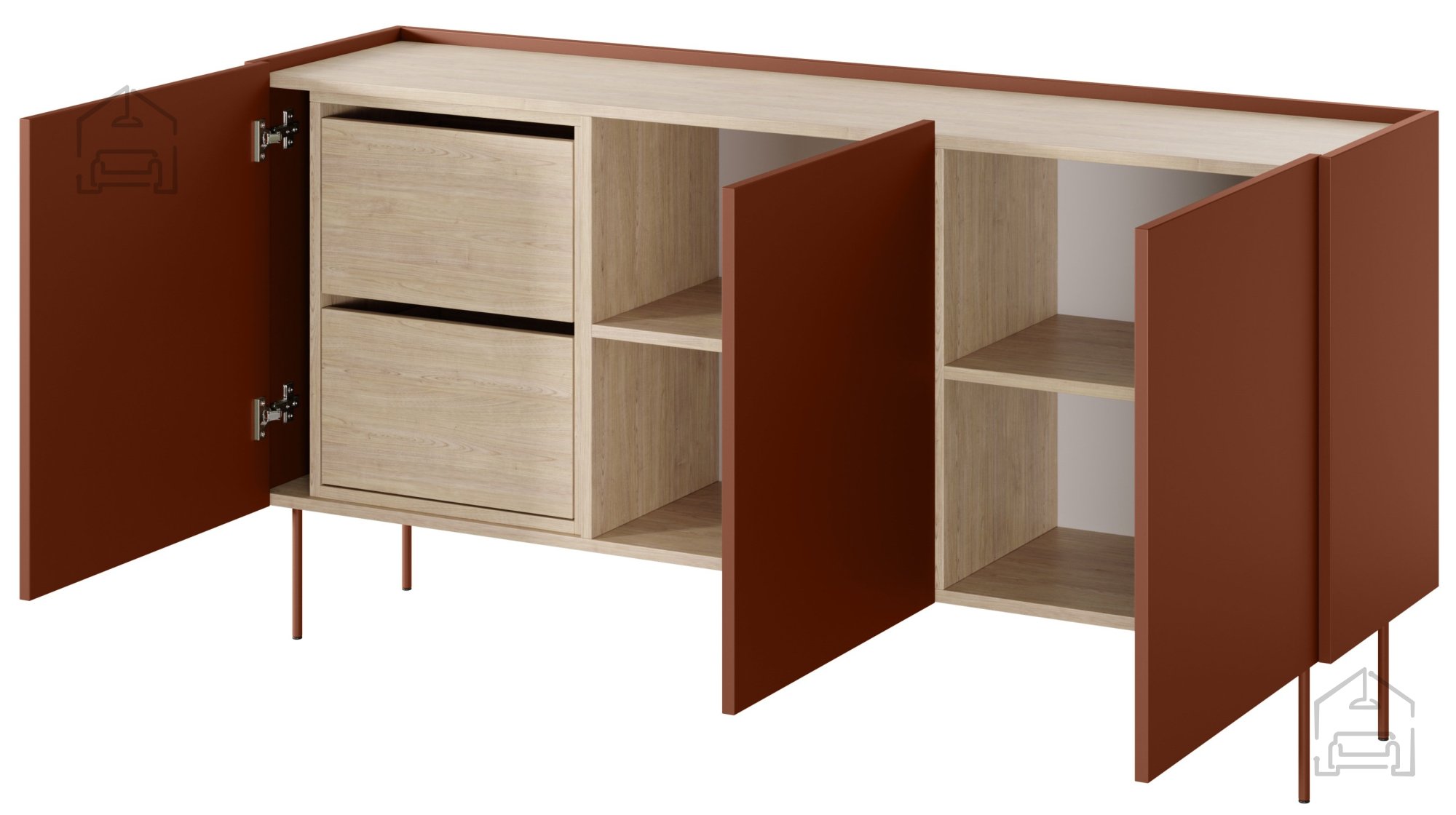 Die Kommode Desin 170 3D2SZ ist mit einem Soft-Close-System ausgestattet, das Türen und Laden leise und sanft schließen lässt. Diese Funktion erhöht nicht nur den Bedienkomfort, sondern verlängert auch die Lebensdauer des Möbels, da die Beschläge und Führungen geschont werden.